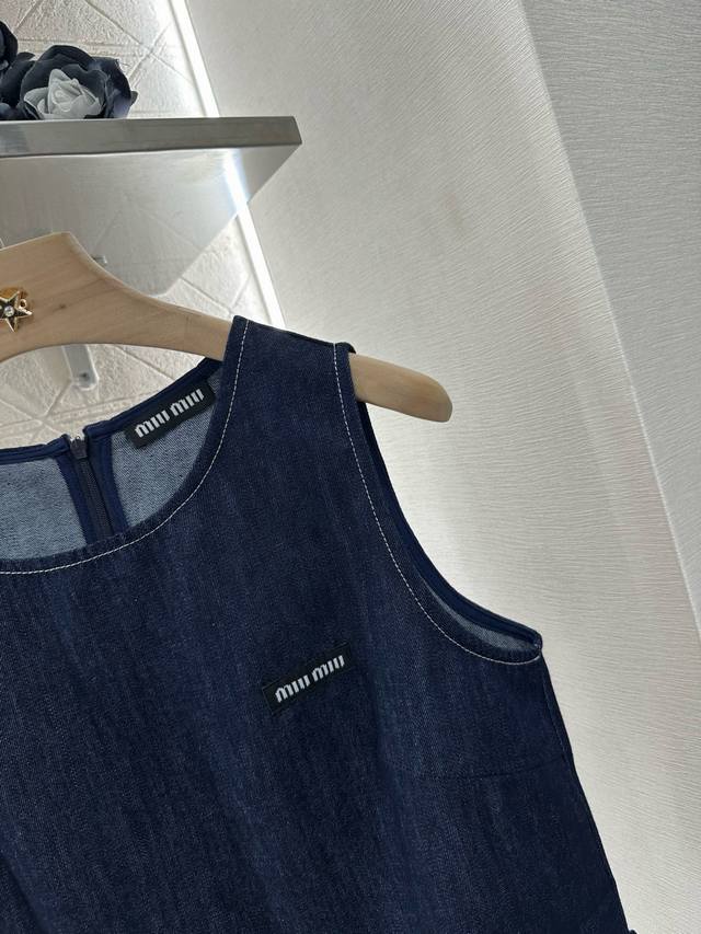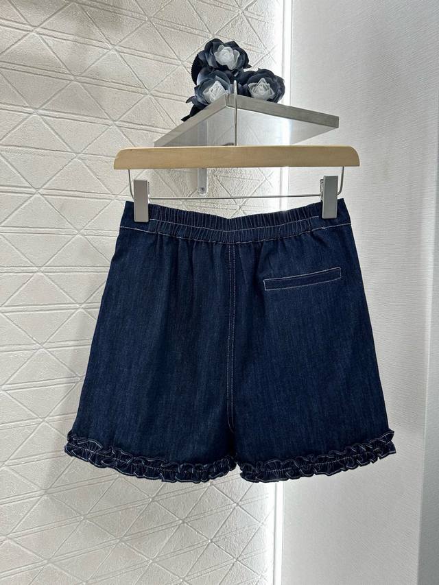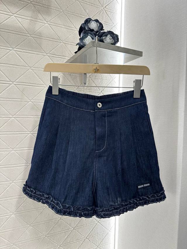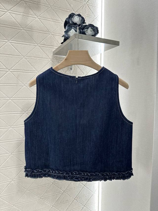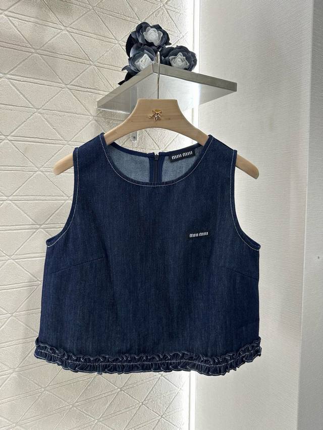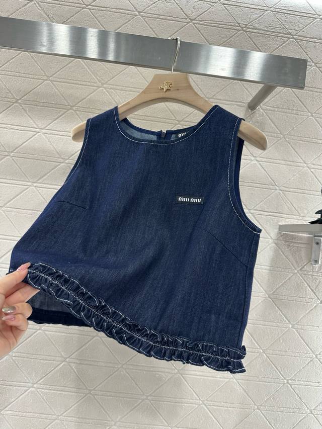 17740# Set Miumi*2025 New Denim Lace Vest Shorts Set Customized Yb Twill Cott