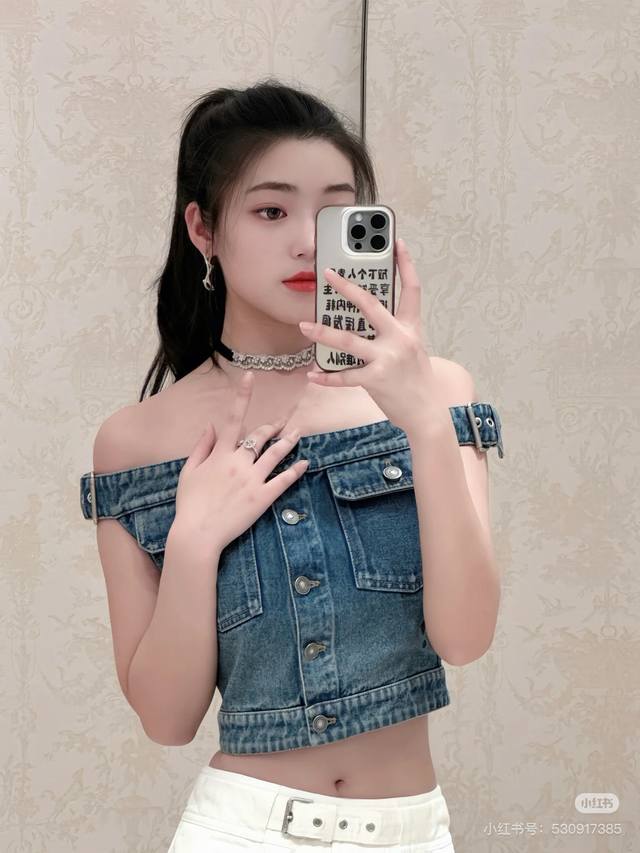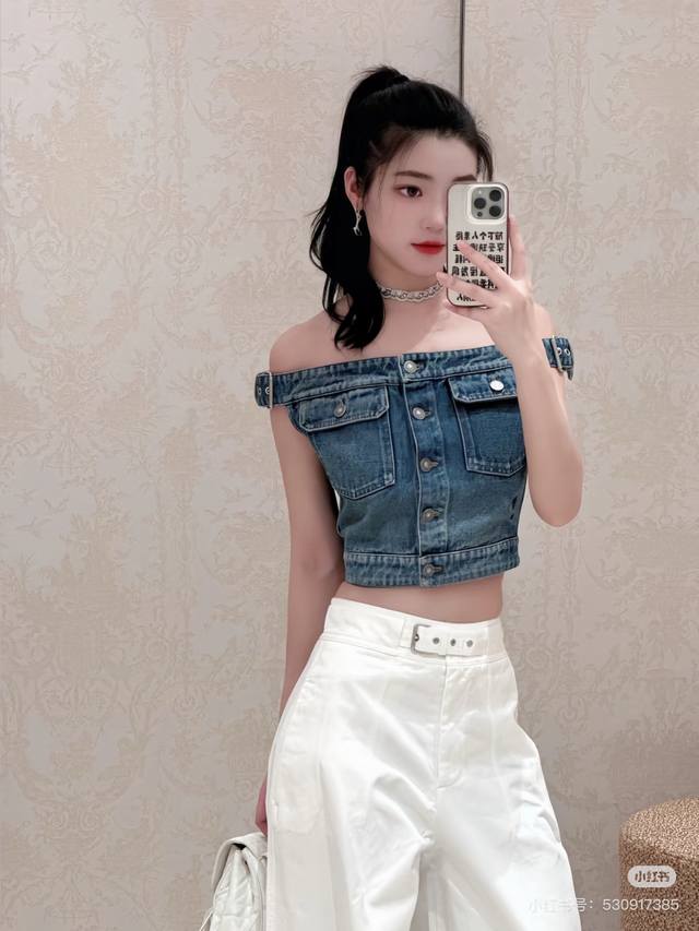 A Classic And Stylish Piece Crafted From Blue Stonewashed Cotton Denim Cropped Silhouette With Buttoned Flap Pockets On The Chest Adjustable Off-The-Shoulder Straps Strapless Design Embellished With The Classic Bee Logo Pair With Matching Jeans For A Stylish Look Sml
