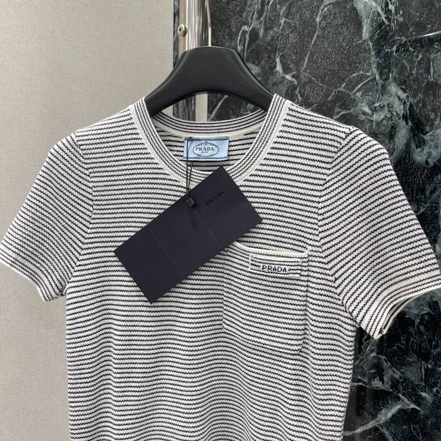 25 New Summer Style Pocket Micro-Label Knitted Short Sleeves Classic Stripes Small Pocket Micro-Label Decoration On The Chest Highlights The Brand Personality And Highlights The High-End Sense Of Wear. The Vertical Pit Texture Design Of The Hemming Makes The Simple Style Look Exquisite And Can Be Worn Alone Or In Layers. Two Colors Sml
