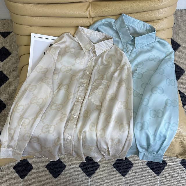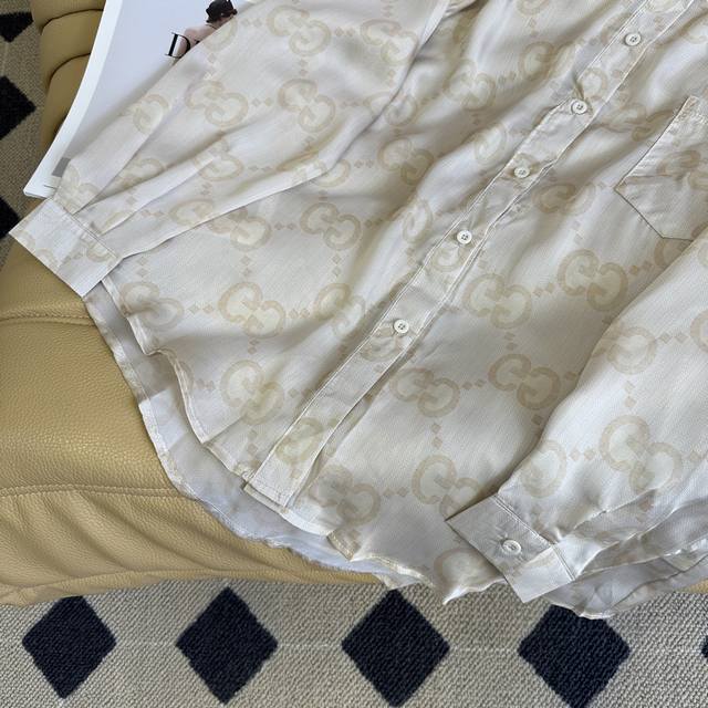 25 Spring And Summer G Family Letter Print Sun Protection Suit Lightweight And Breathable Breathable Lightweight And Soft Lapel Shirt Tailoring Design Full Pair Of Gg Embellishments Overall Visual Relaxation And Comfort Up Also Has A Fashionable Style Daily Fashion And Sun Protection Two Colors And Three Sizes