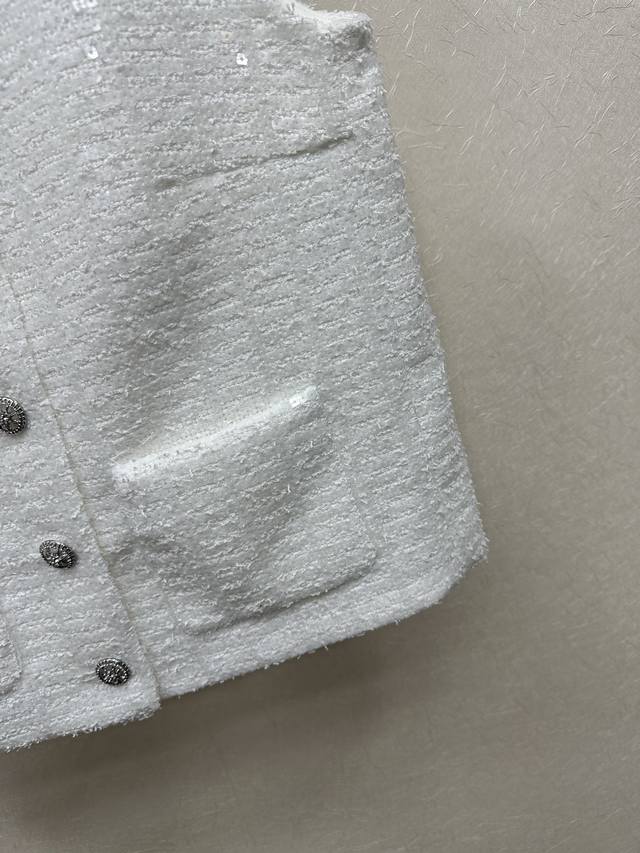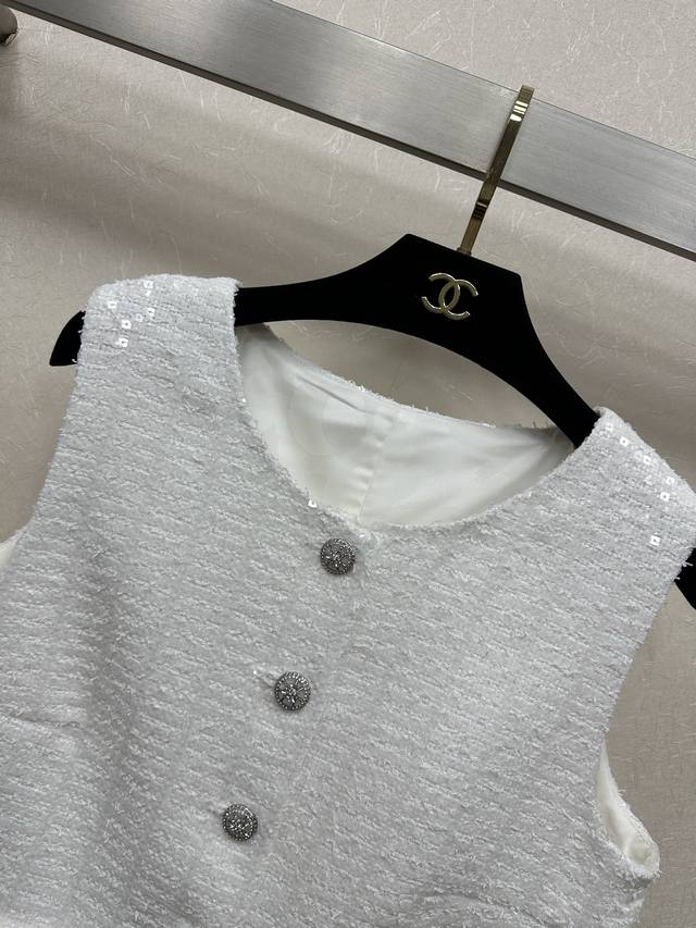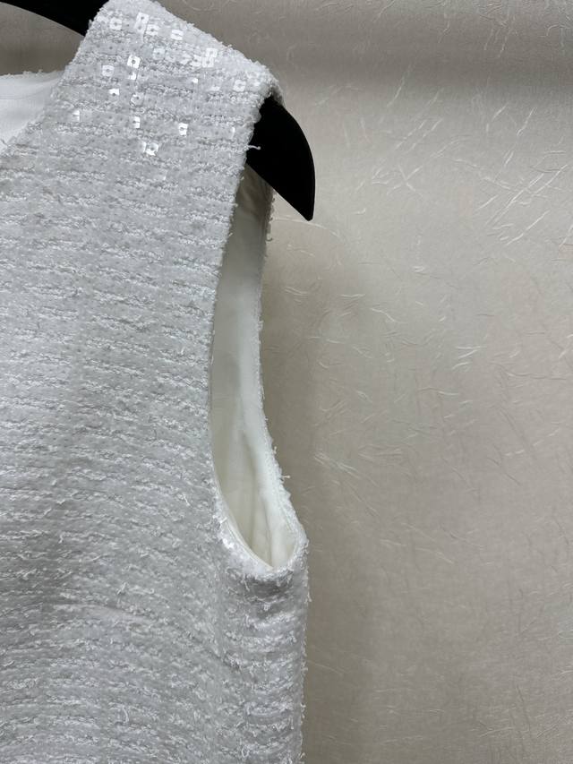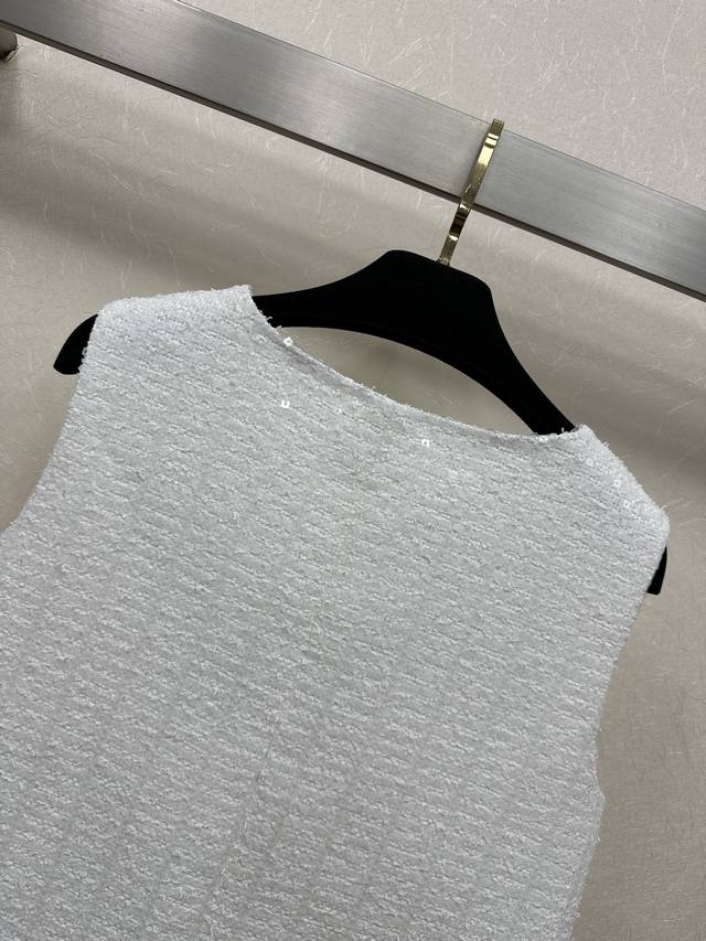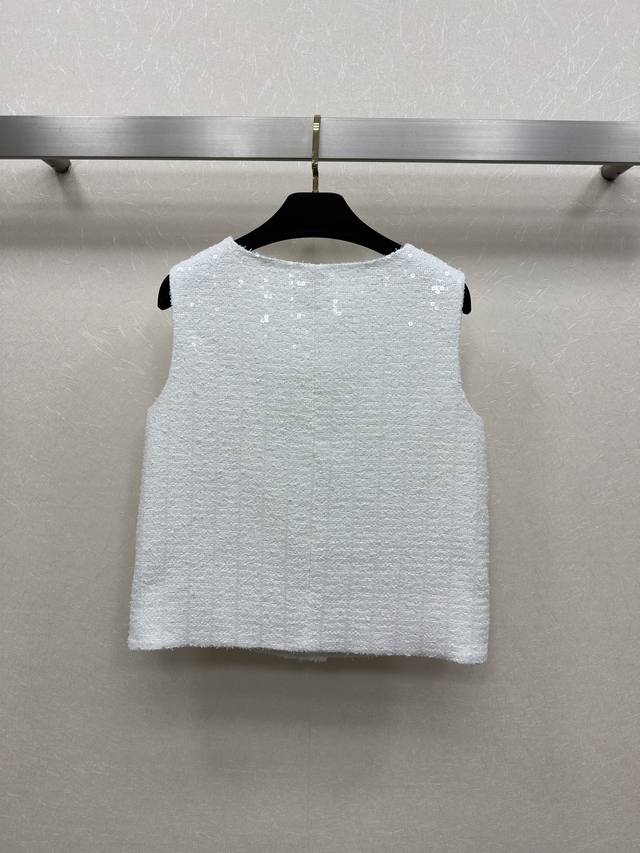 25Ss Chane *New White Sequin Sleeveless Tweed Vest From The Spring And Summer