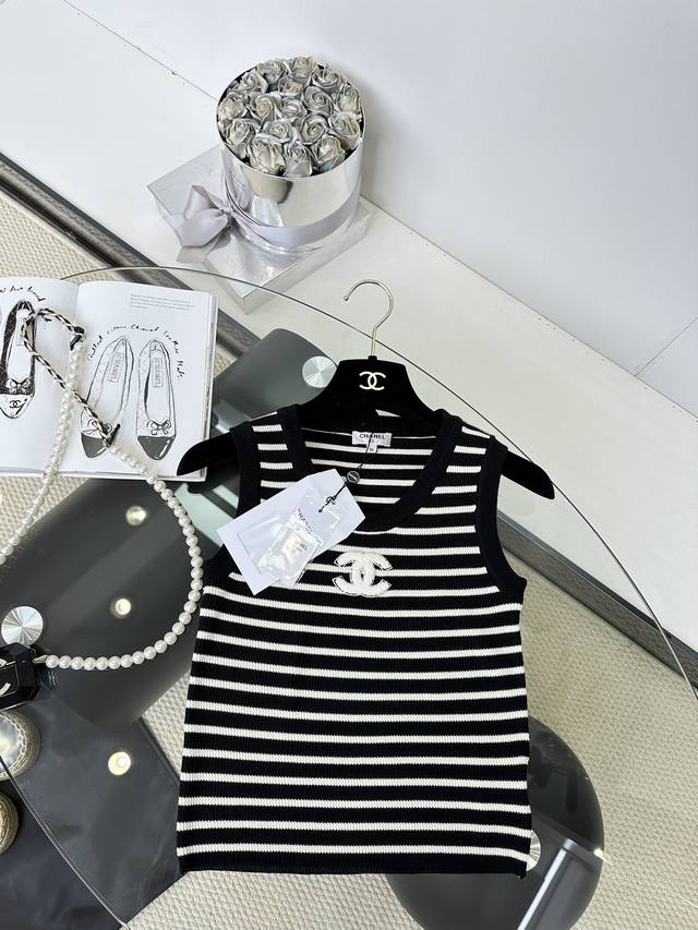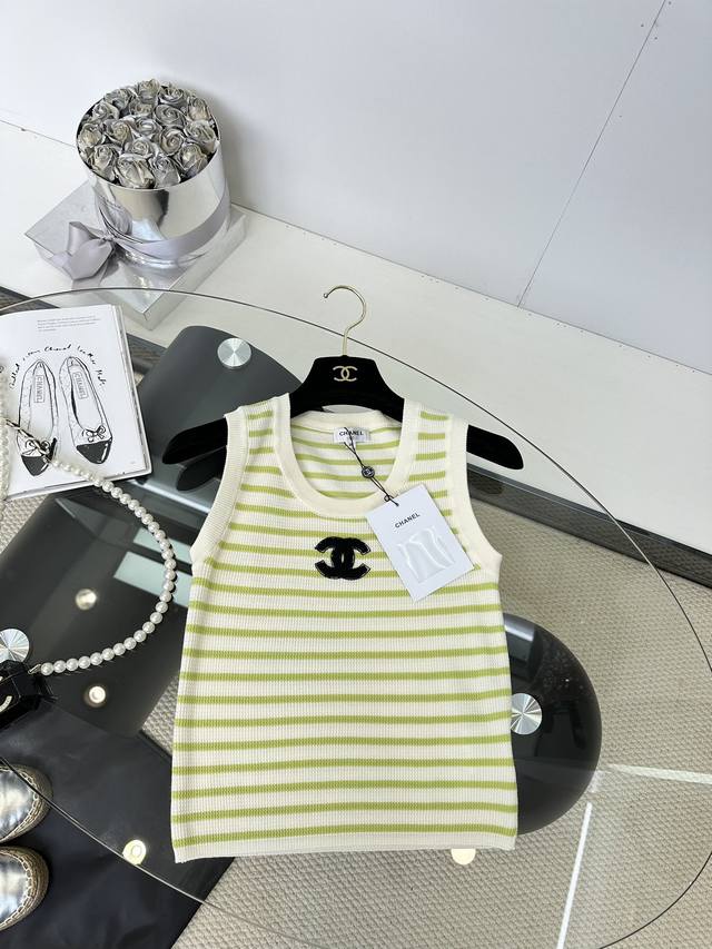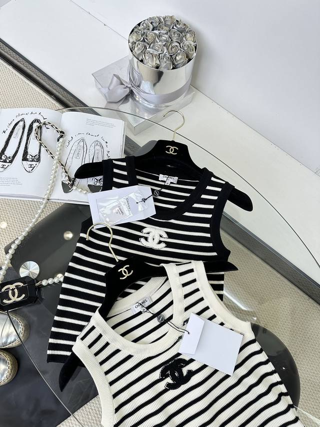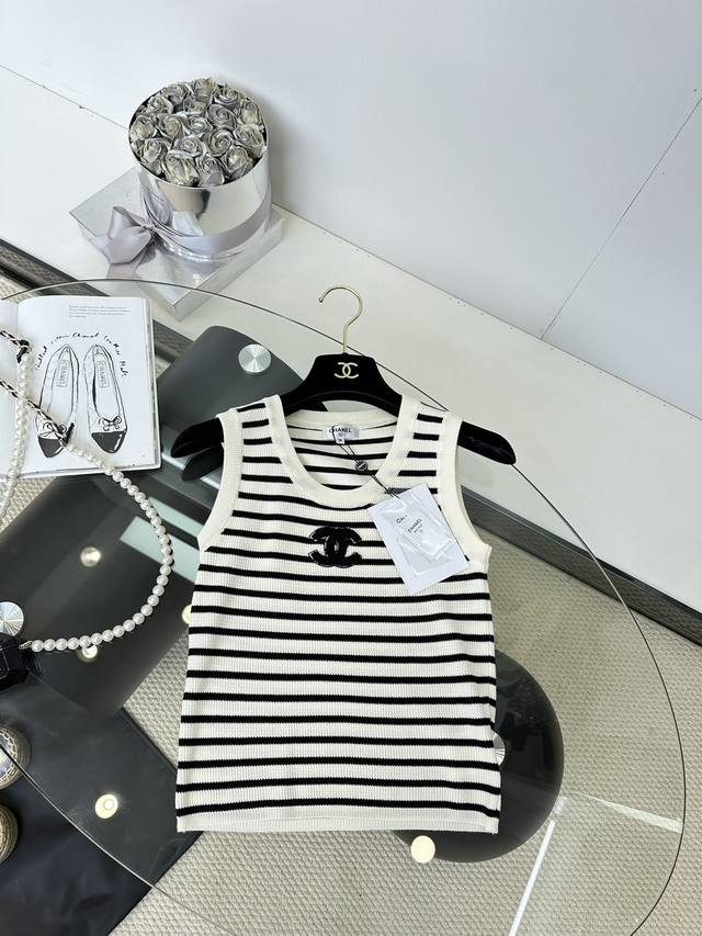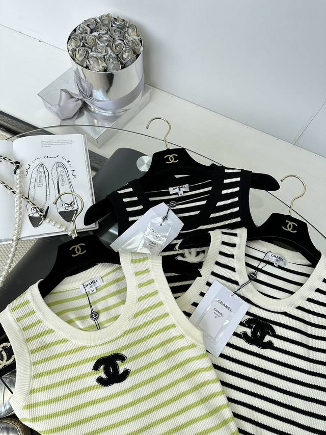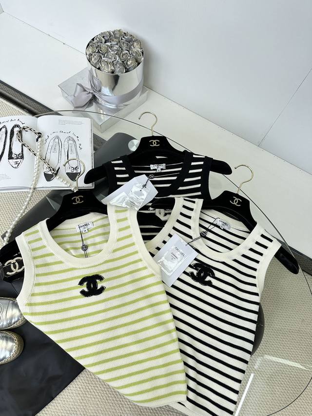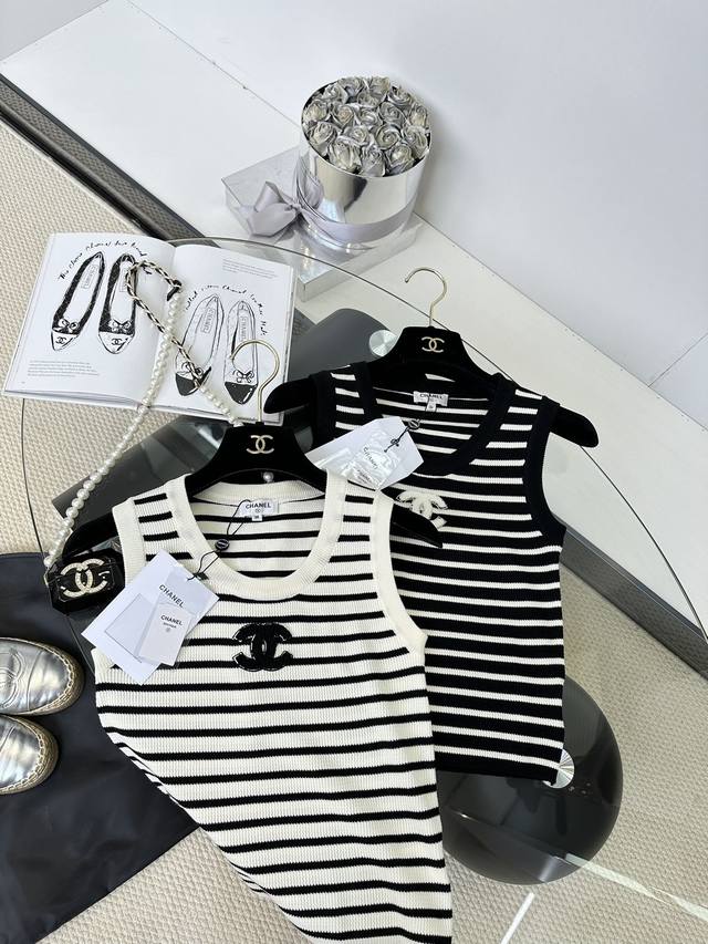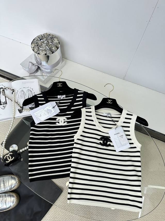 25Ss Chanel Vintage Striped Vest With Double C Embroidery Logo Embellishment