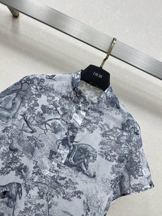 25Ss Dio *New Spring And Summer Animal Jungle Stand-Up Collar Flying Sleeve Shirt Classic Ruyi Animal Jungle Series Super Practical Heavy Embroidery Bee Cd Custom Animal Jungle Print Pattern Pure Cotton Fabric Upper Body Full Of High-End Feeling Easily Create A Fashionable Style Three-Dimensional Straight And Wide Version Upper Body Super Slim And Proportional One Color Three Sizes Sml