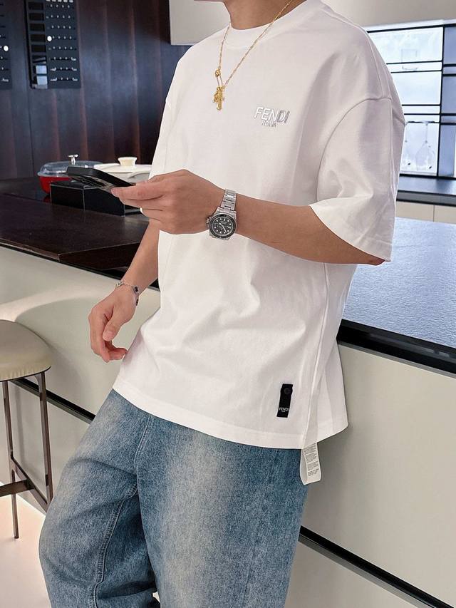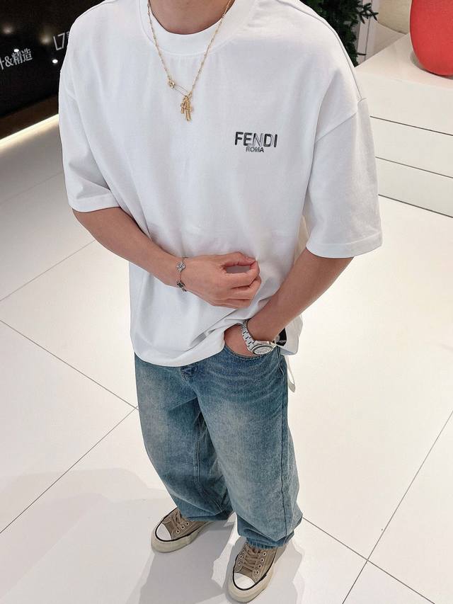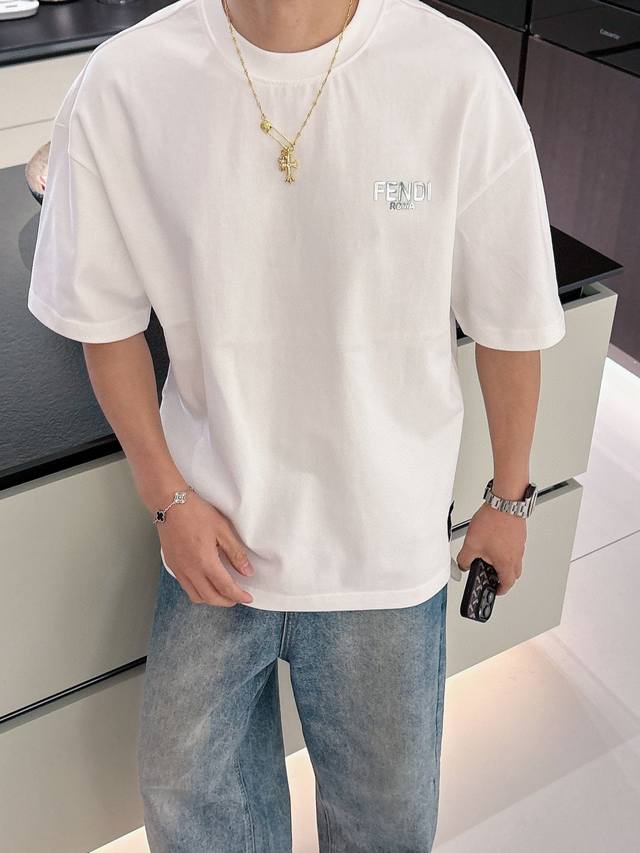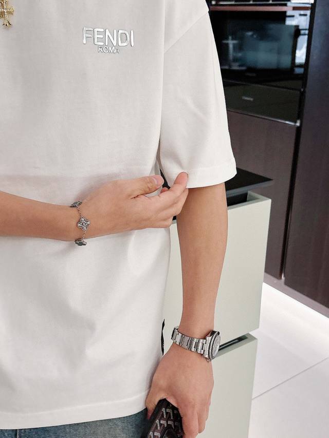 25Ss Fendi's New Round Neck Short-Sleeved T-Shirt Is Made Of 280G Double Yarn Plain Cotton Fabric. The Chest Is Made Of Fendi Roma's Laser 3D Three-Dimensional Printing Technology. The Ribbed Knitted Neckline Is The Same For Men And Women.