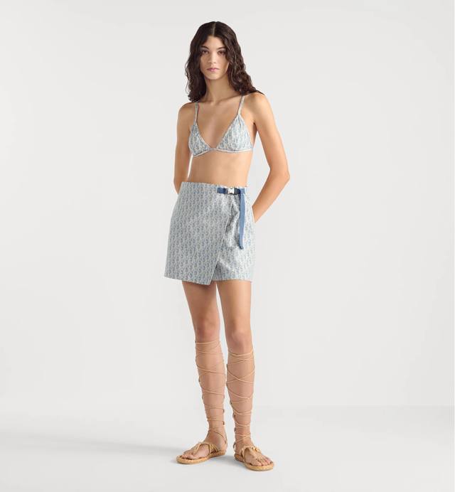 25Ss New Arrival White And Blue Taffeta Jacquard Shorts Dress