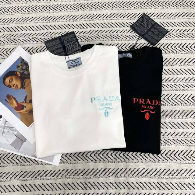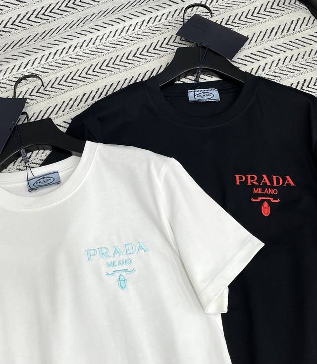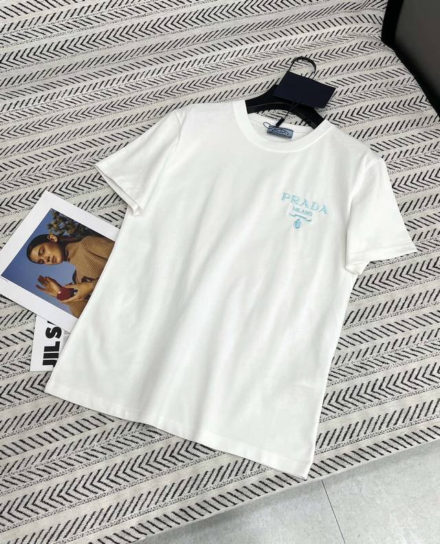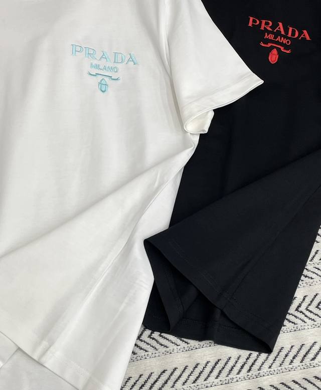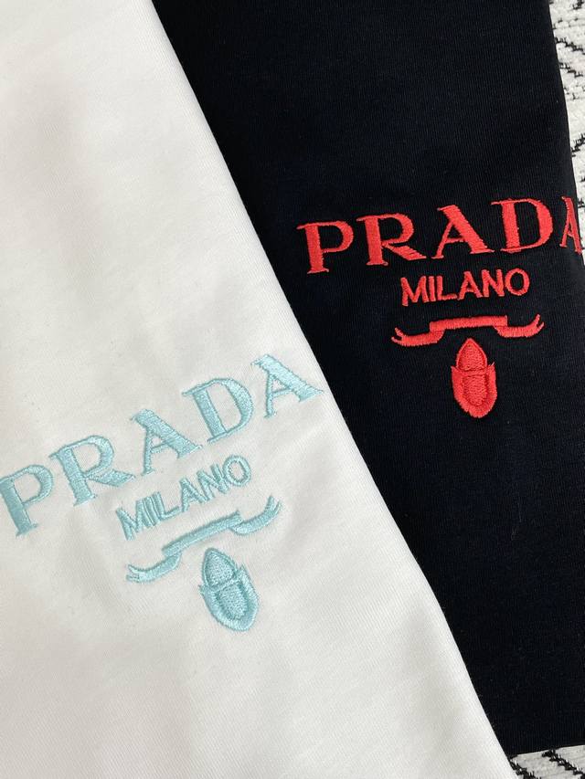 Prada Simple Embroidered Logo Letters All-Match Pattern T-Shirt