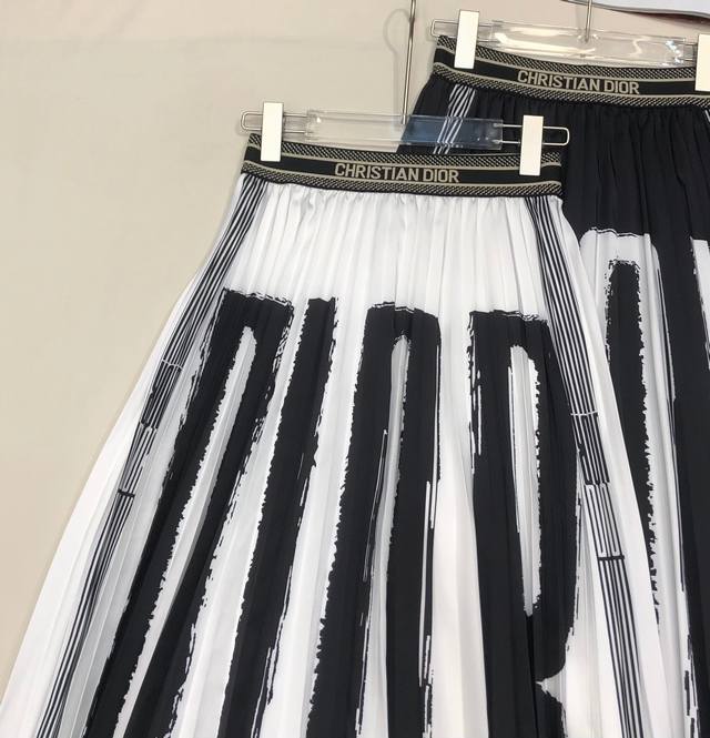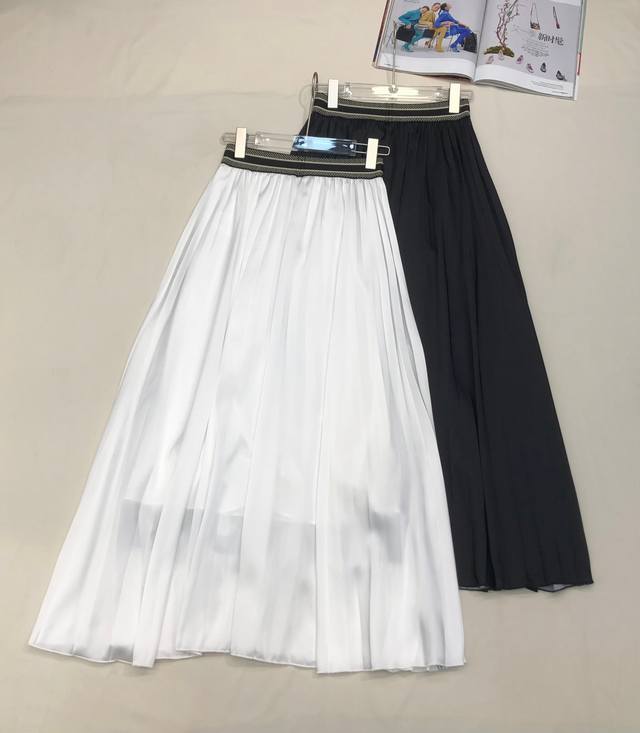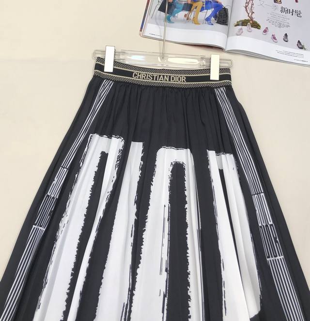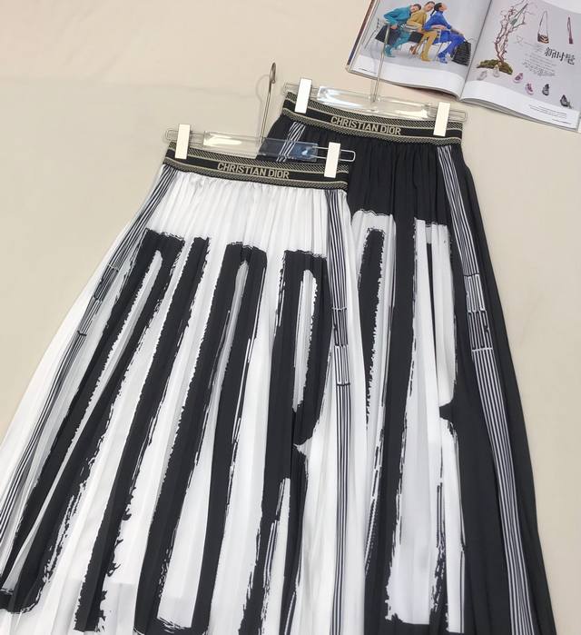 4Io* 25Ss New Style Pleated Printed Skirt Classic Elastic Waist Printed Fabric Splicing Side Simple Temperament Generous Two Colors Three Sizes Sml