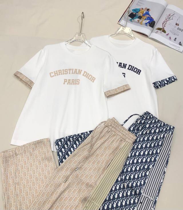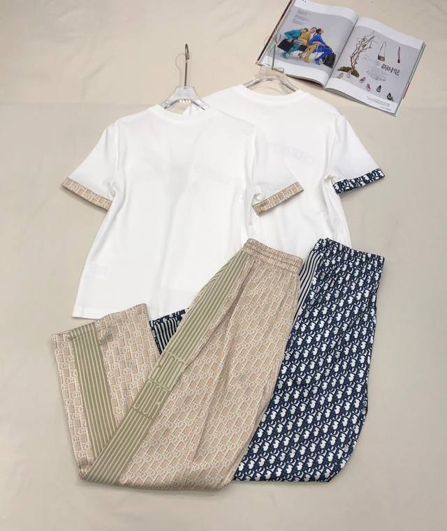 4Io* 25Ss New T-Shirt Wide-Leg Pants Suit Old Flower Printed Fabric Printed Fabric Splicing Decoration Casual Style Two Colors Three Codes Sml