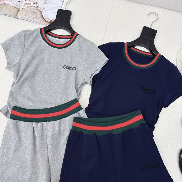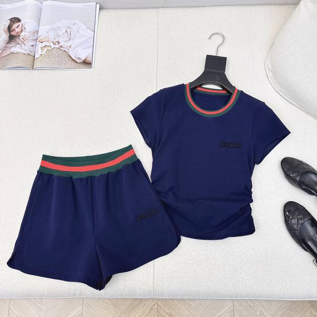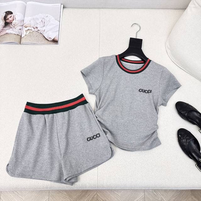 A Must-Have For Fashionable People, A Set That Is Super Easy To Wear. Gu 25Ss The Latest Spring And Summer Classic Threaded Decorative Casual Set Slim Fit Short-Sleeved Top + Elastic Waist Shorts Short Version Casual And Lazy And Fashionable For Daily Life Or Sports Short And High-Waisted Shorts Design Can Hide Meat And Make You Look Taller Suitable For All Body Shapes One Set Of Two Colors Available For Sale Sml S Size Shoulder Width 36 Bust 82 Length 45 Waist 60 Hips 90 Pants Length 34 Manual Measurement May Have Errors