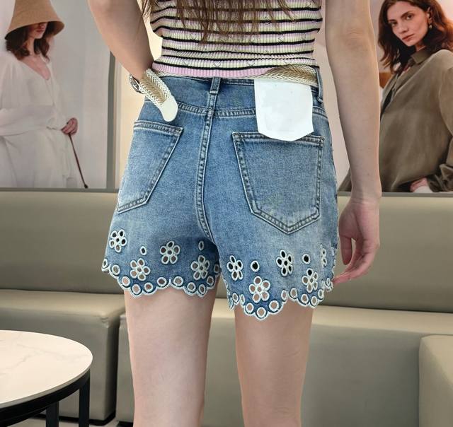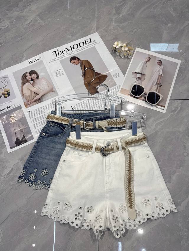 A Must-Have For Summer, This Popular Hollow Embroidered Flower Shorts Perfectly Interweave Romance And Fashion. Exquisite Flower Embroidery And Hollow Elements Show The Ingenuity Of Details, Adding Agility And Playfulness. The Playful Wavy Edges Outline The Soft Lines Of The Legs. Denim Blue And Pure White Are Available. Suitable For A Variety Of Styles. Paired With A Simple Top, Whether Walking On The Street Or On Vacation, It Can Show Unique Charm And Easily Become The Focus Of Summer. Smlxl
