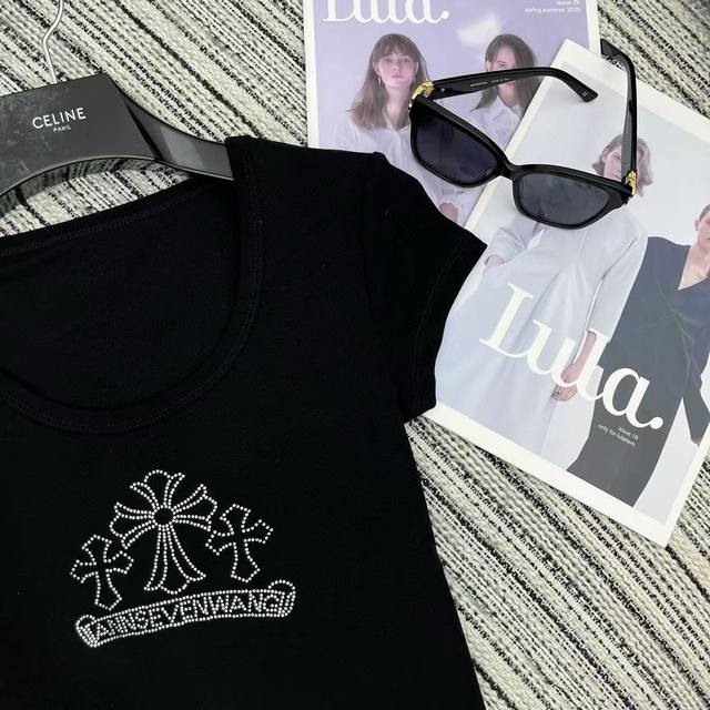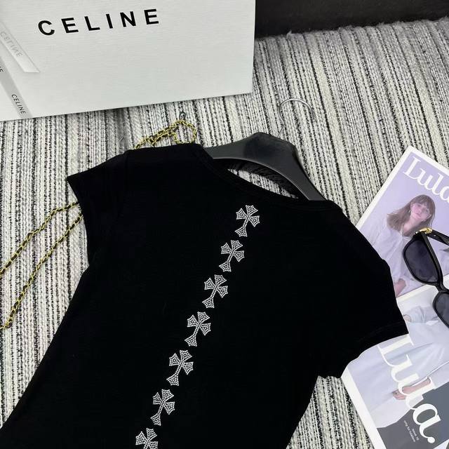 Chorme Heart* 25Ss New Spring And Summer Cross Hot Diamond Print Round Neck Short-Sleeved T-ShirtExclusive High-Edition Production Super Versatile Short-Sleeved T-Shirt The Base T-Shirt That Feels Like A Silk Mask Is Just What Fashionistas Need. It Has A Relaxed Feeling And Is Textured And Casual When Worn. Available Now Sml