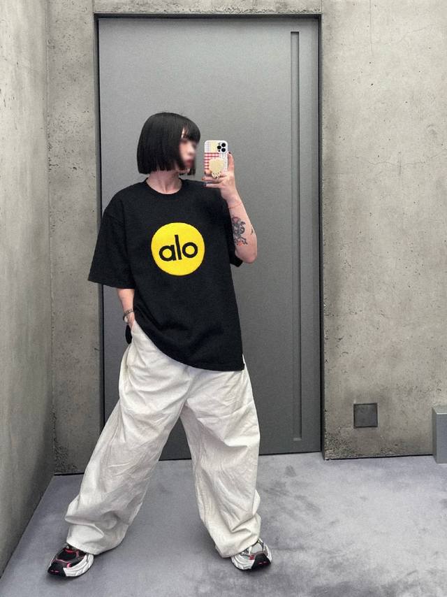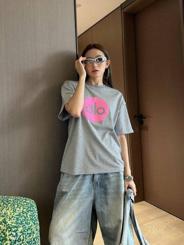 alo Foam 2025 New Lazy Style Printed Loose Short-Sleeved T-Shirt Style Number