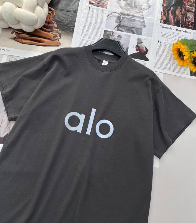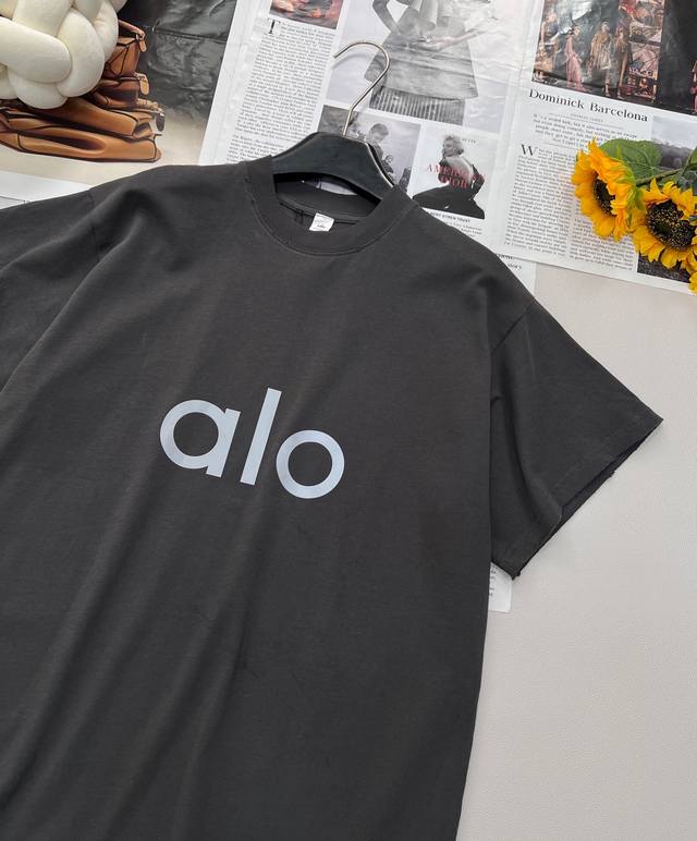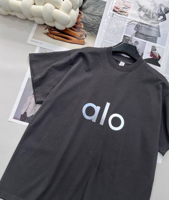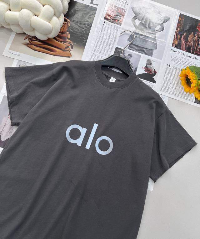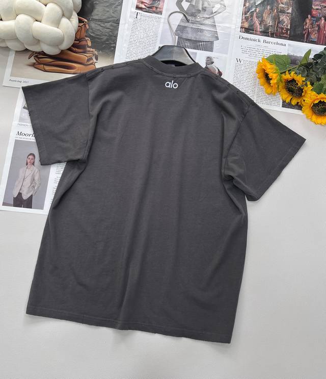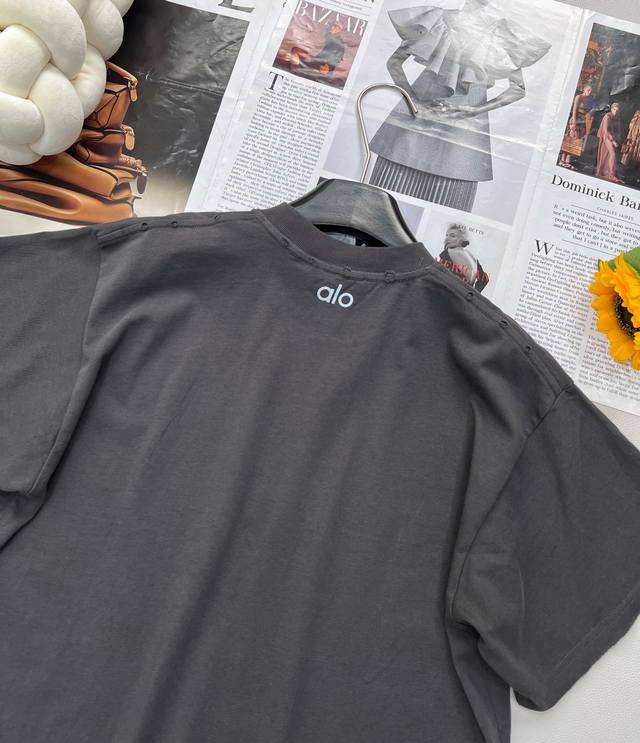 alo's New Reflective Letter Distressed T-Shirt. Unique Distressing Craftsmans