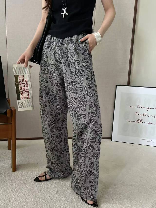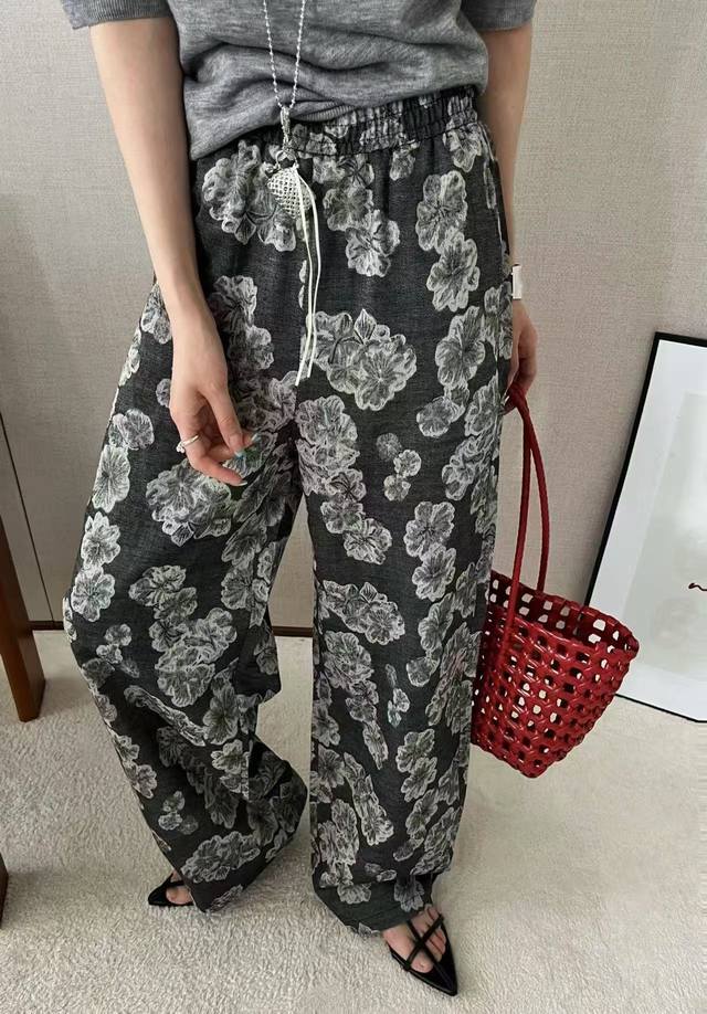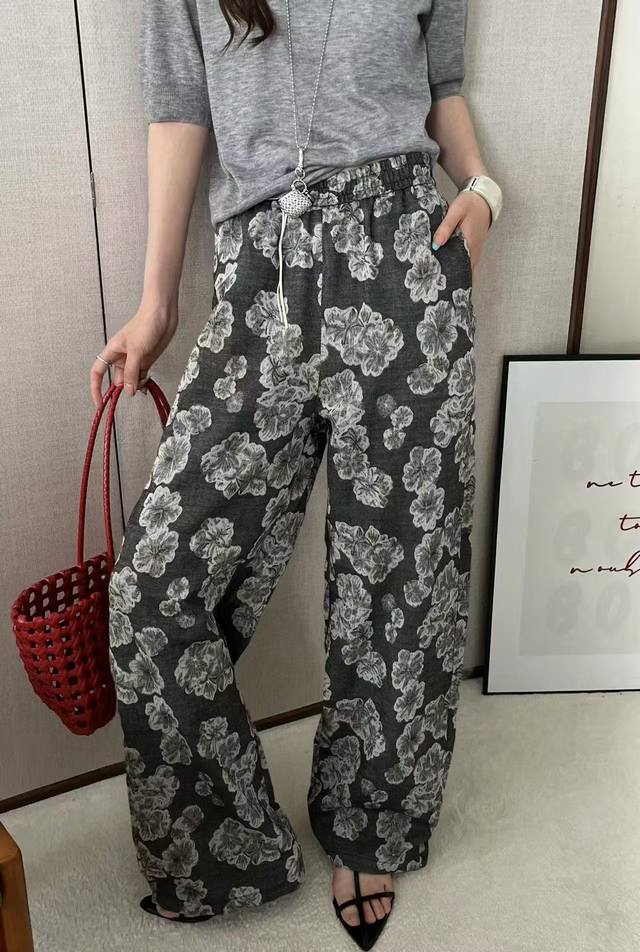 Artistic Style Retro Print Drape High Waist Wide Leg Pants New Commuter All-Match Casual Straight Pants Two Sizes Ml Cotton And Linen
