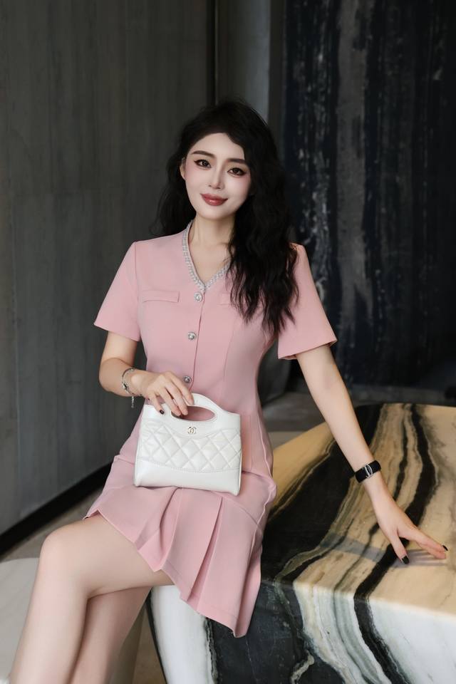 Black Pink S-Xxl 5 Sizes ~ New Arrival, High-End Atmosphere, Light Luxury, Celebrity Temperament, Small Fragrance Style, French Heavy Work, Exquisite V-Neck, Beaded Fishtail, Full Hem, Slimming And Slimming, Temperament, A-Line Dress, Simple And Elegant, High-End, Elegant And Noble, Super Fairy, Super Beautiful, A Favorite, S Size, Bust 88, Waist 74, Shoulder Width 38, Skirt Length 82,