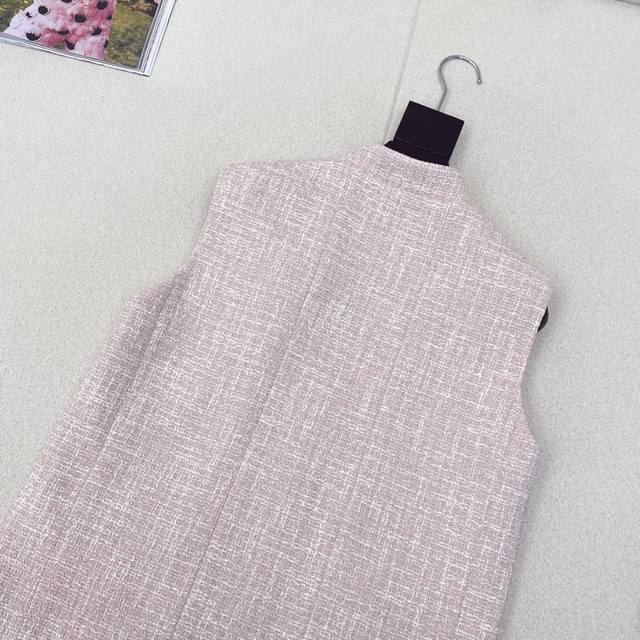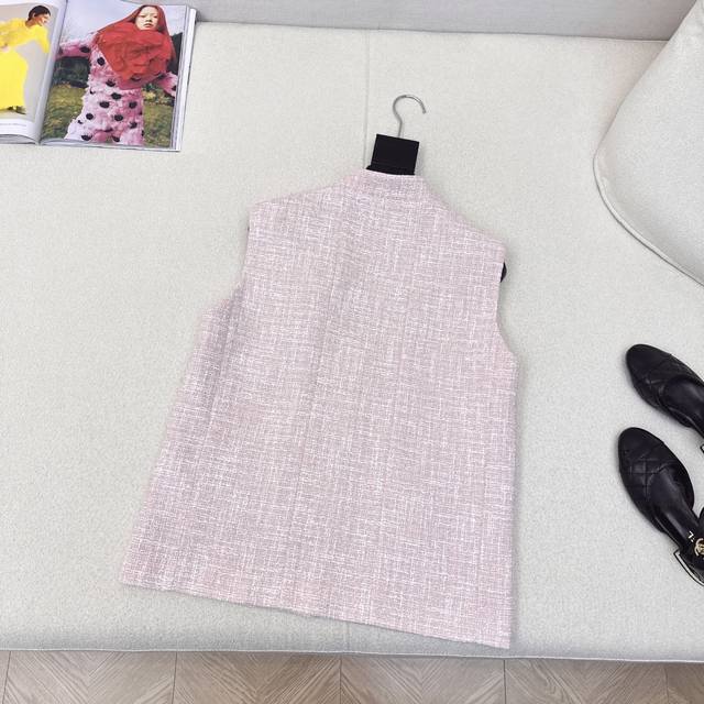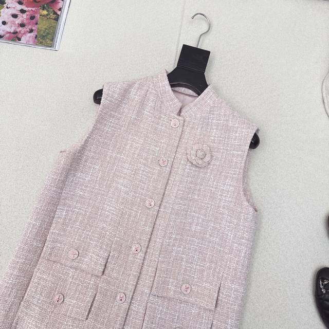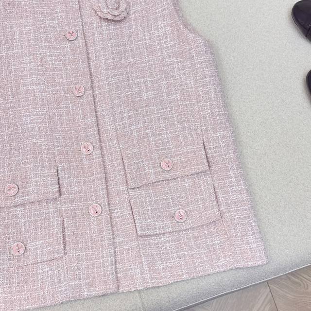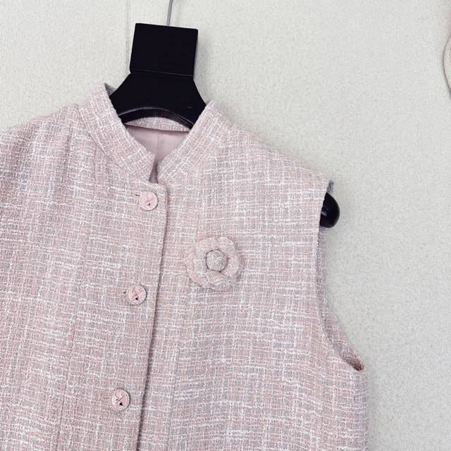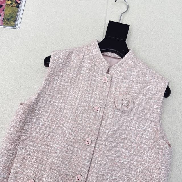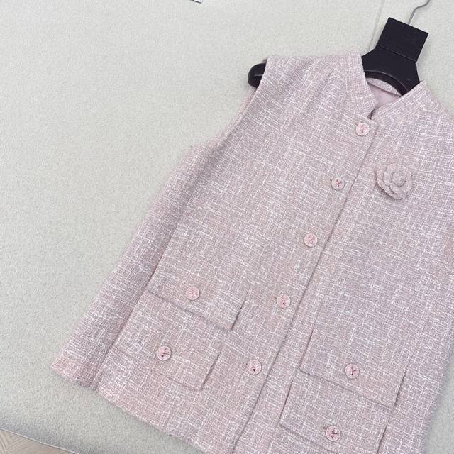 c Home 25Ss The Latest Spring And Summer Tweed Stand-Up Collar Vest Jacket. The Pink Tweed Is Low-Key And Exquisite. The Upper Body Version Is Super Good-Looking, Slim And Advanced. The Vest Is Definitely A Versatile Item For All Seasons. Whether It Is Simple Or Layered, It Is Very Fashionable. The High-End Workmanship And Quality Are Very Good. The Detachable Three-Dimensional Camellia Decoration Also Looks Good With Other Clothes. The Same Color Is Available For Sale. Sml Size Bust 98 Clothing Length 61 Manual Measurement May Have Errors