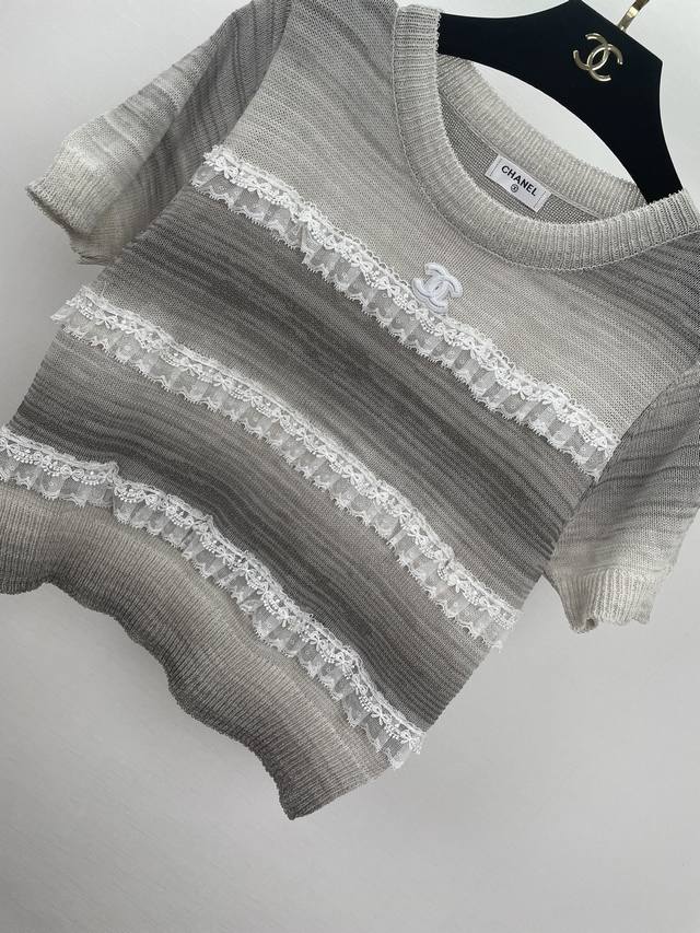 c Home Lace Stitching Knitted Short Sleeves Classic And Timeless Suitable For Summer Wear Round Neck Short Sleeves Pullover Design Comfortable Fabric