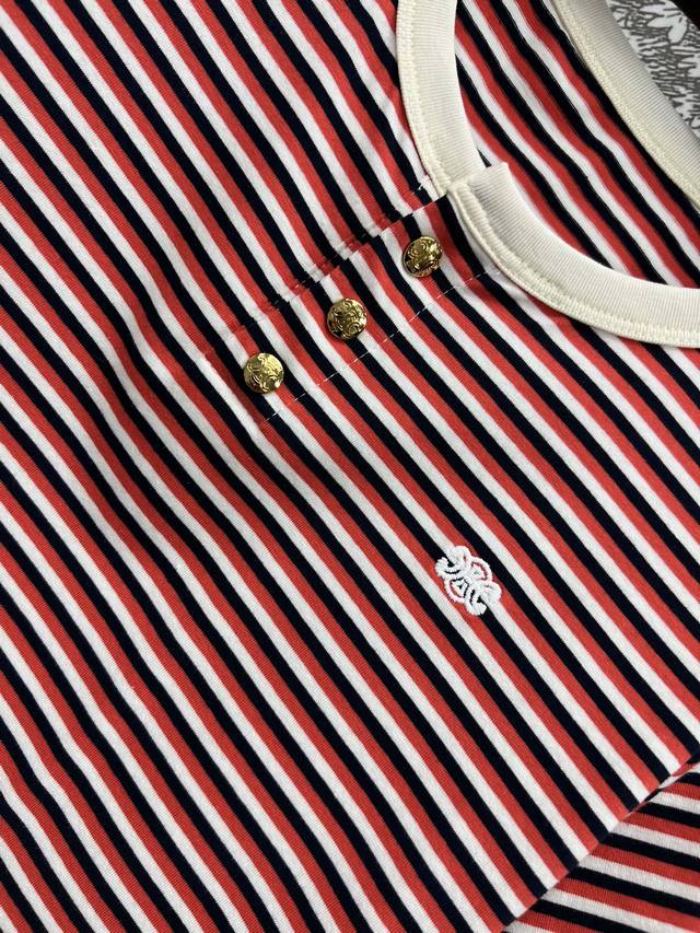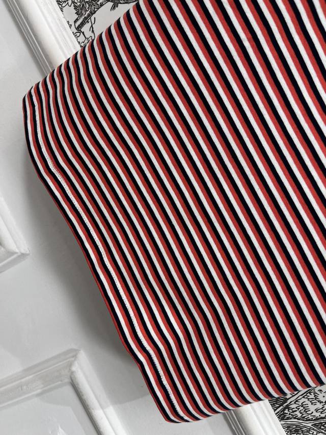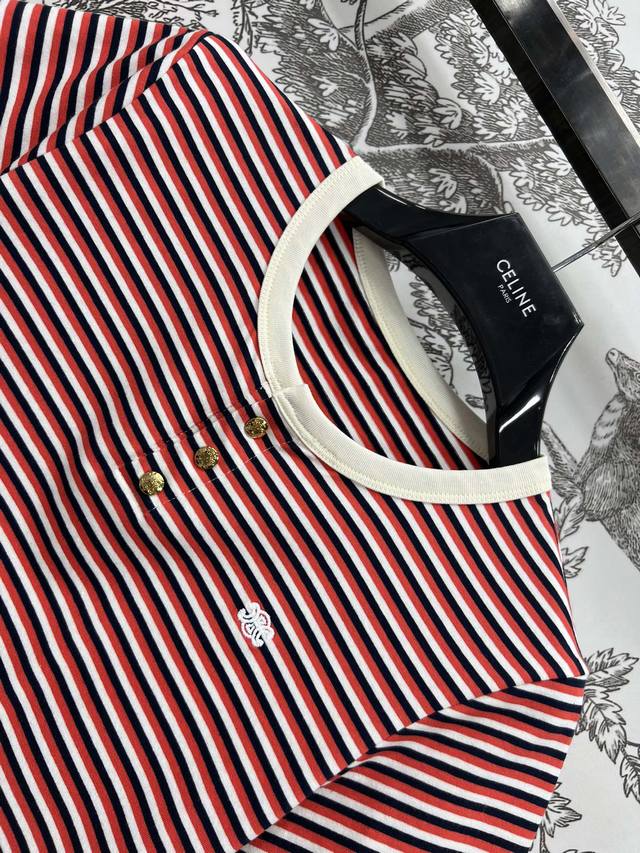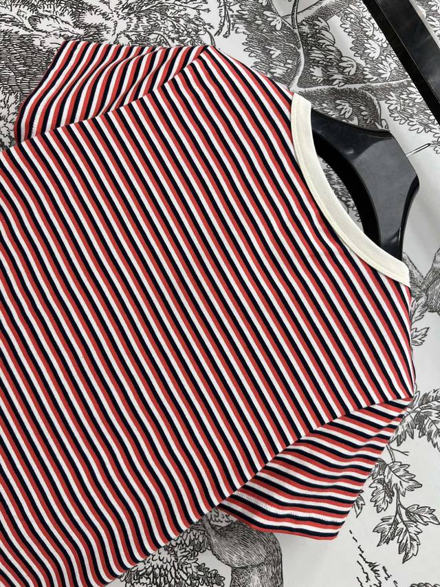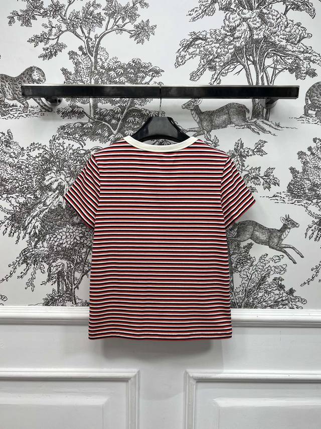 ce Home 25 Spring And Summer New Style Red And White Striped Short-Sleeved Intellectual Fashionable Style Temperament Striped Short-Sleeved T-Shirt Sweet Girl Age Reduction Sports Girl Single Product Basic Loose Version Customized Metal Logo Buckle Decoration Contrast Color Embroidery Arc De Triomphe Embellishment Low-Key Luxury Can Be Sweet And Salty Temperament Age Reduction Girl Style All-Match Not Picky One Color Three Sizes