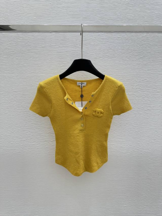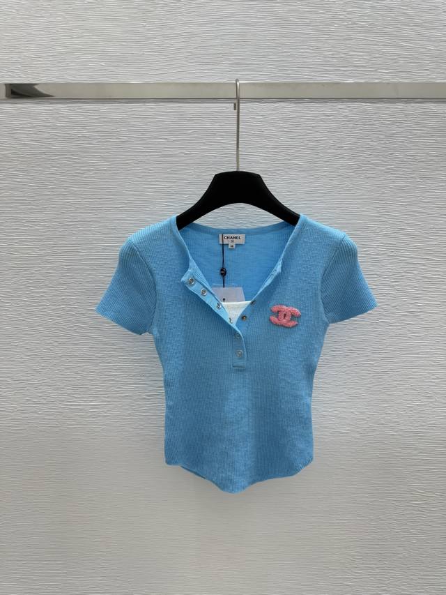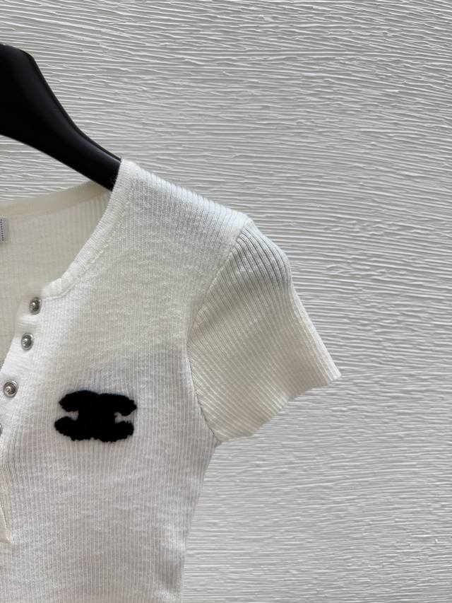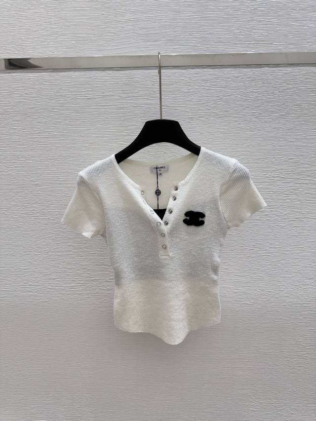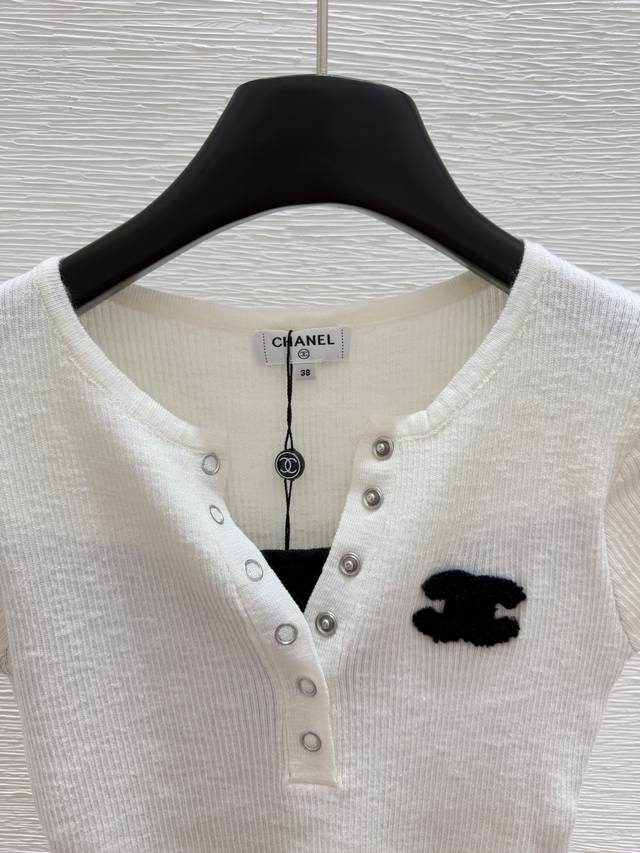 / ch Early Spring New Round Neck Fake Two-Piece Knitted Short Sleeve Color Whit