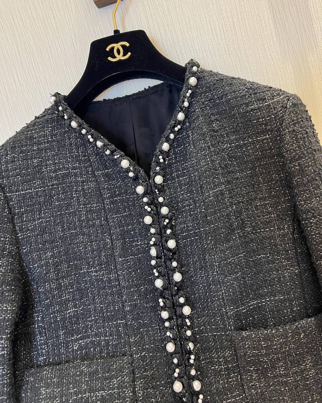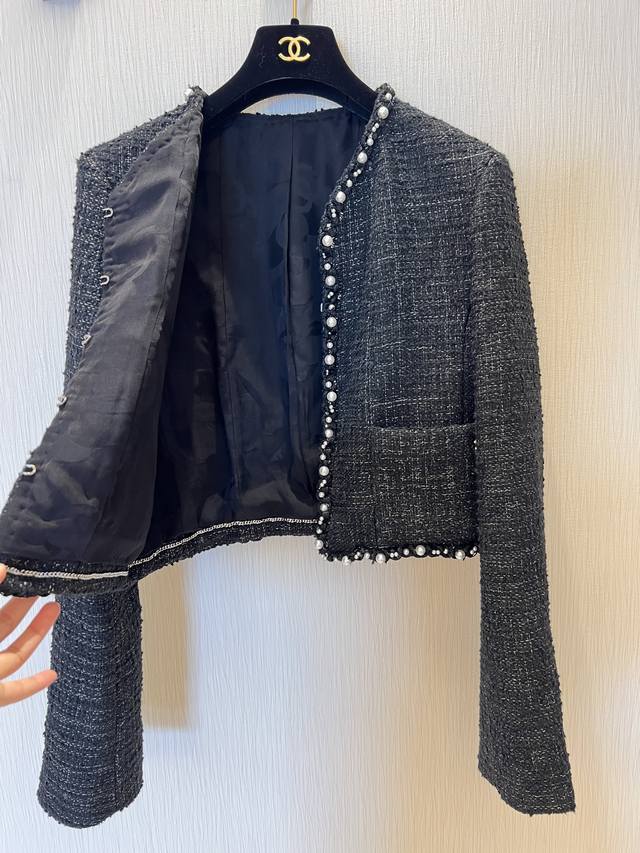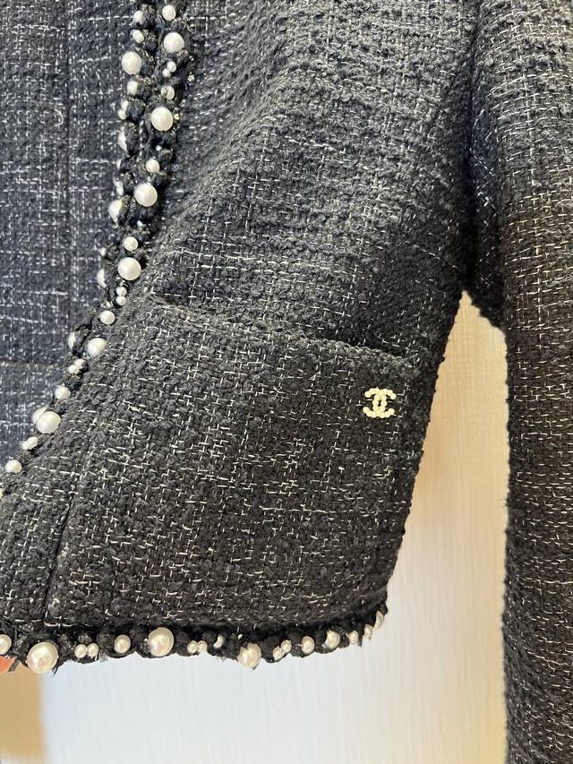 cha 2025 New Pearl Jacket Embellished With Pearls Of Different Sizes Double C
