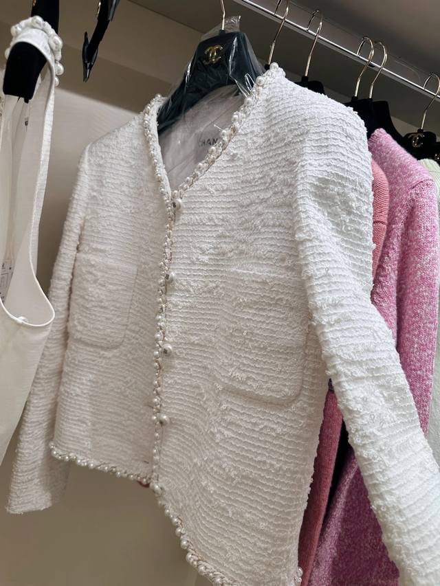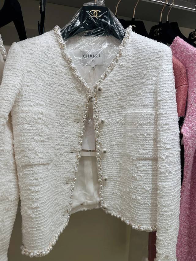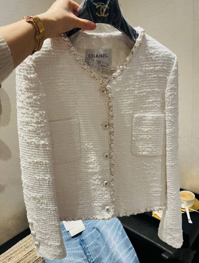 Chan*2025 New Pearl Woolen Coat. The Collar Extends To The Front And Hem. It Is Decorated With Three-Dimensional Binding Edges. Pearls Of Different Sizes Add A Sense Of Refinement And Agility To The Overall Shape. It Shows A Luxurious Texture. Once You Put It On, You Will Have A Rich Girl's Atmosphere. Whether It Is Matched With A Dress Or Jeans, You Can Easily Create Different Styles And Easily Control Various Occasions.