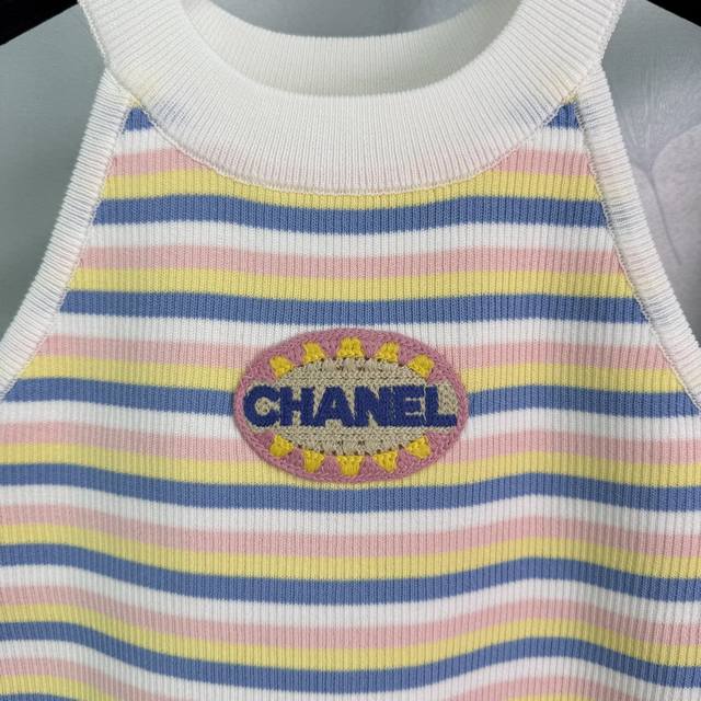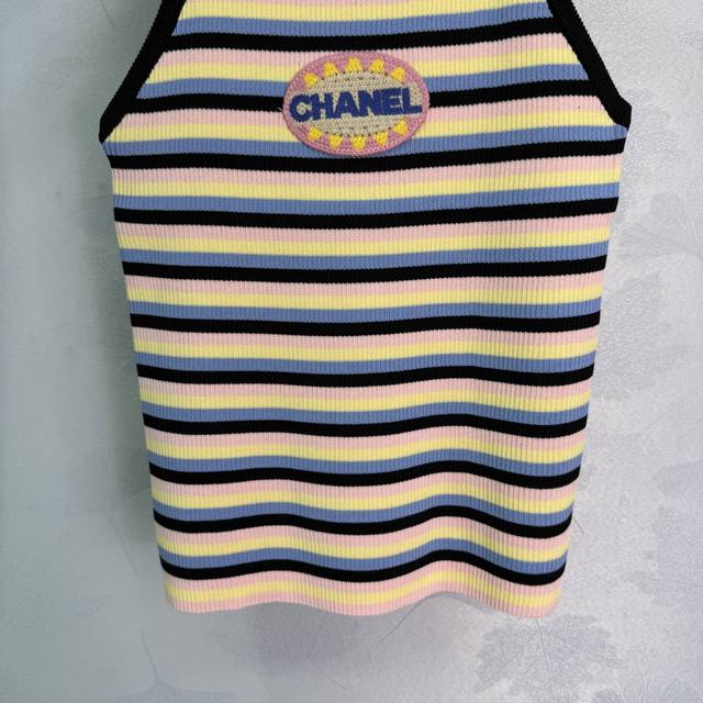 chane* 2025 Spring And Summer Latest Series Knitted Striped Round Neck Vest Custom Made Of Pure Cotton Yarn, Delicate Texture, Breathable And Comfortable Knitted Striped Vest Tailoring, Pink, White And Black Stripes Interwoven Throughout The Collar Edge, Brightened With Pink, Elastic Fabric, Fits The Body Shape And Makes You Look Thinner, The Letter Badge Decoration On The Chest Shows The Brand Tone, Versatile Style, Not Picky About Age And Skin Color, More Relaxed, Holiday Feeling, Suitable For Reducing Age And Fashionable Style, 2 Colors And 3 Sizes Sml T226B