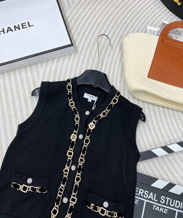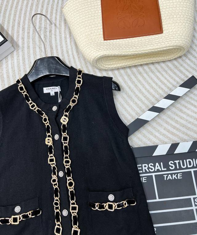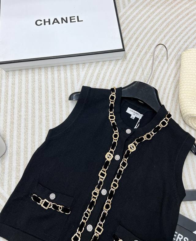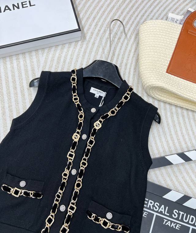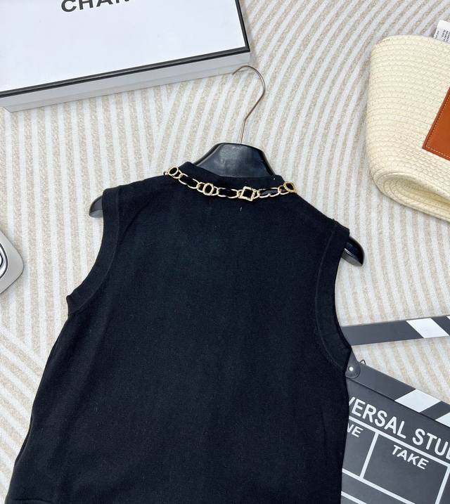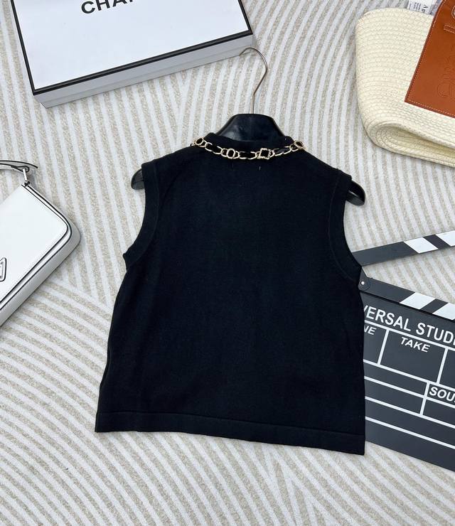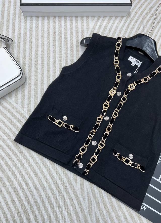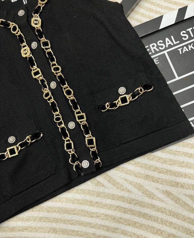 chane* 24A New Autumn And Winter Handmade Black Gold Chain Series Knitted Ves