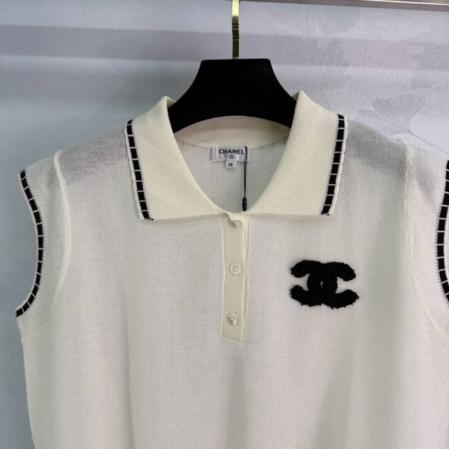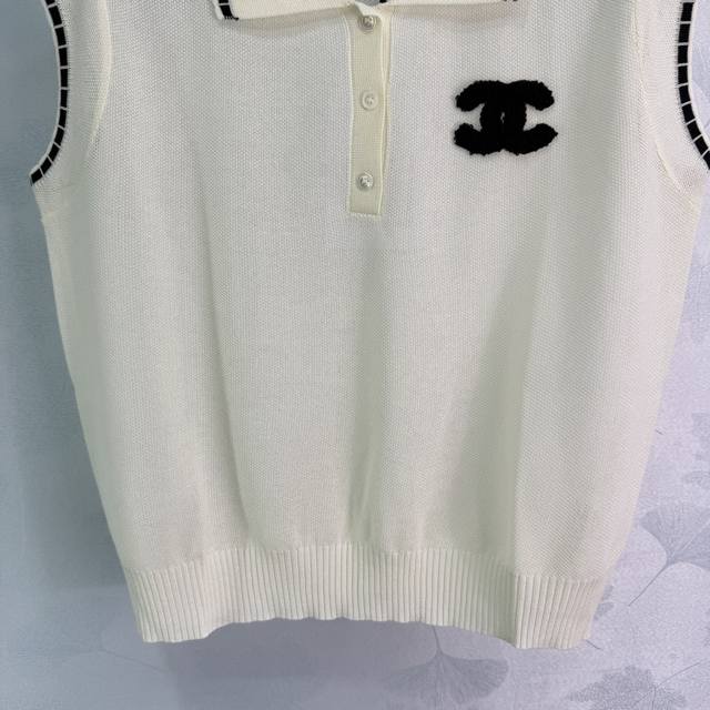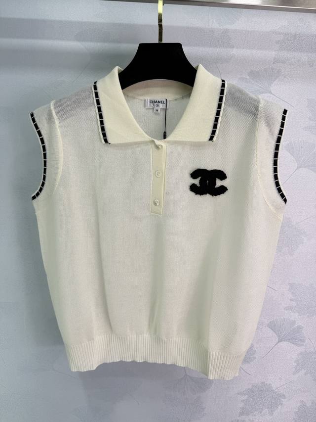 chane* Chanel Knitted Lapel Vest With Double C Embroidery In White And Gray. Super Comfortable To Wear In Summer. Simple And Generous. Looks Good When Worn Casually. 2 Colors And 3 Sizes. Sml T226B