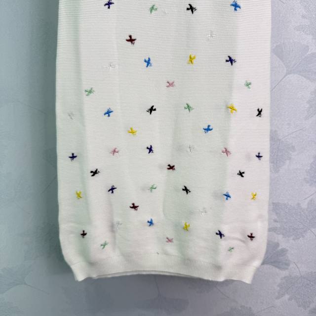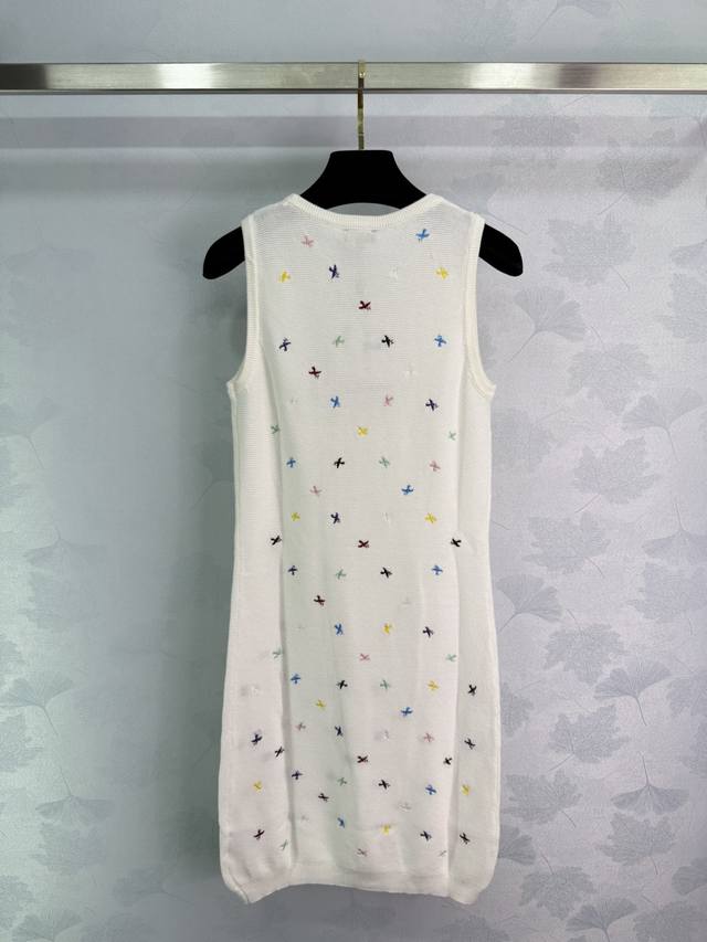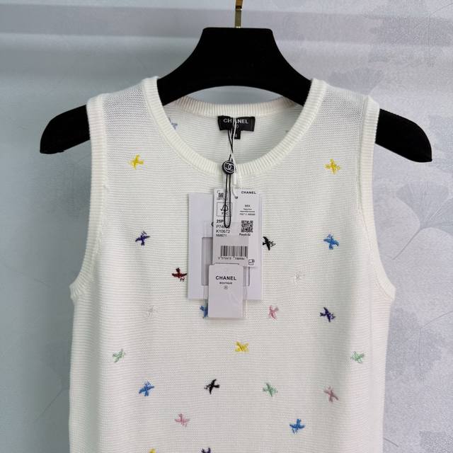 Customized Yb Wool Yarn Woven With Delicate Texture, Breathable And Comfortable Knitted Sleeveless Vest Dress Cut With White As The Base, Colorful Flying Swallows And Double C Logo Decoration Collision Highlight The Bright Spot, The Style Is Jumping And Changeable, With Elastic Fabric To Modify The Body Shape And Make It Look Thinner, Showing The Brand's Tone, Versatile Style, Not Picky About Age, Skin Color, More Relaxed, Holiday Feeling, Suitable For Reducing Age And Fashionable Style, Customized Surface And Accessories, Identify The High Version 36 38 40 T226B