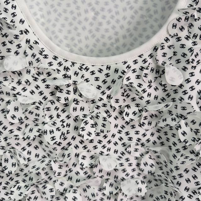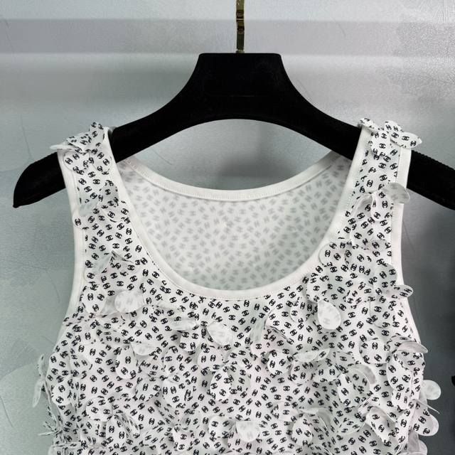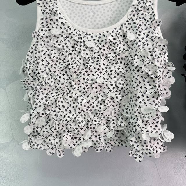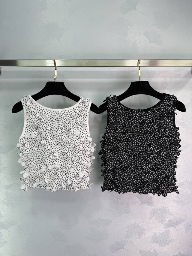Customized Yb Imported Material Texture Glossy Advanced And Comfortable Handmade Flower Vest Available In Black And White. Fully Decorated With Double C Letter Logo With Three-Dimensional Petal Shape. Full Of Fragrance And Noble And Gorgeous Style. Moderate Exposure Of Chest And Clavicle To Modify The Shoulder And Neck Lines. Cute And Sexy. High-Quality Texture. Easily Become The Visual Focus. Relaxed Temperament. First Choice For Vacation. Customized Surface And Auxiliary Materials. Look For The High Version. 2 Colors 36 38 40 T226B