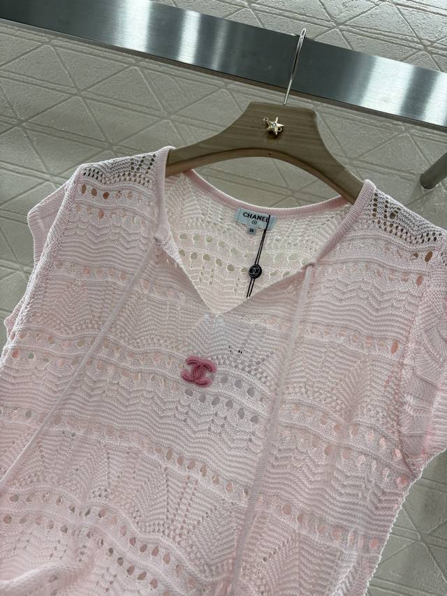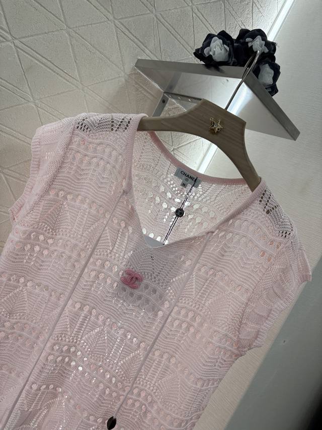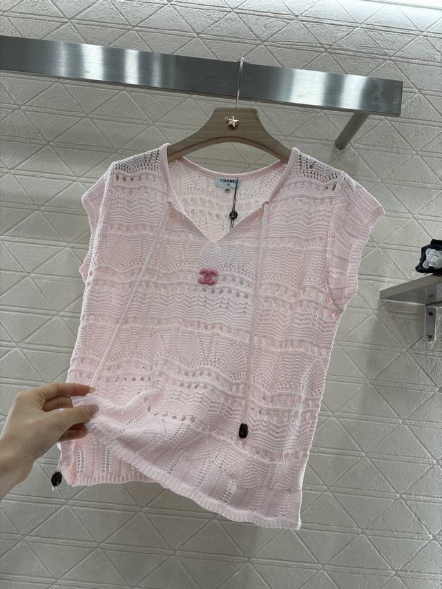 chane*2025 New Arrivals Lace-Up Hollow Knit Top Customized Yb Wool Yarn Weavi