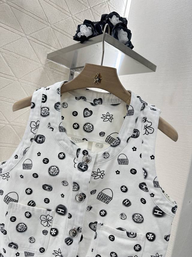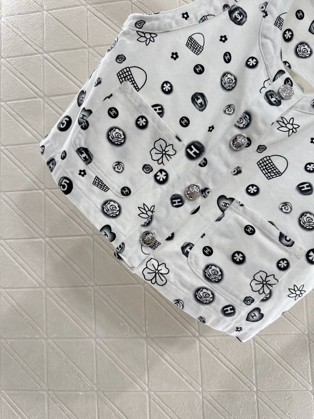 chane*2025 New Arrivals Printed Colorful Denim Vest Shorts Set Customized Yb