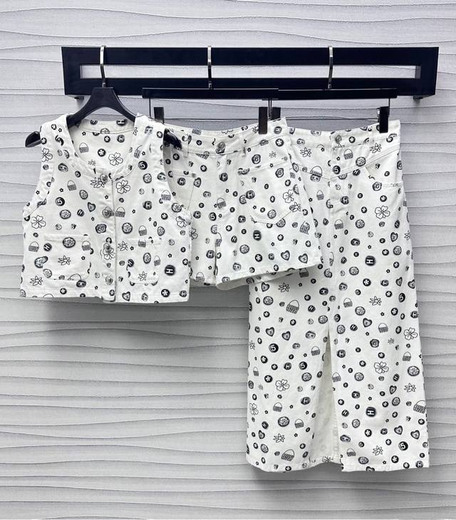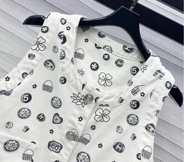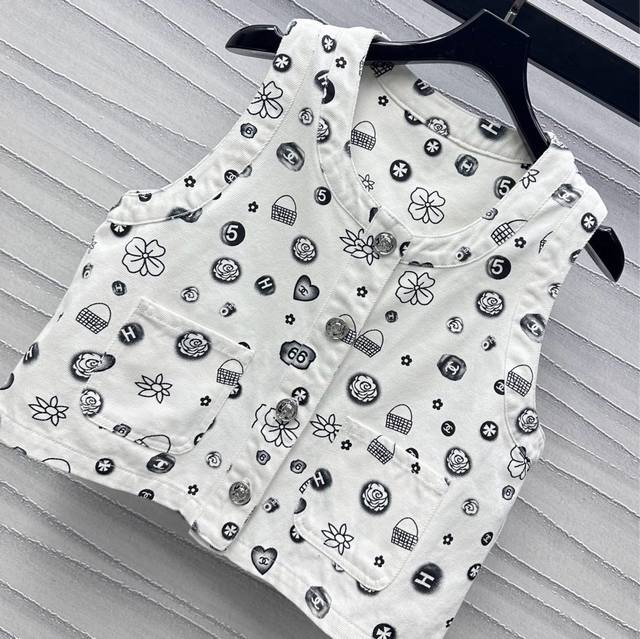 chane*2025 New Arrivals Printed Denim Vest Customized Yb Imported Twill Cotto