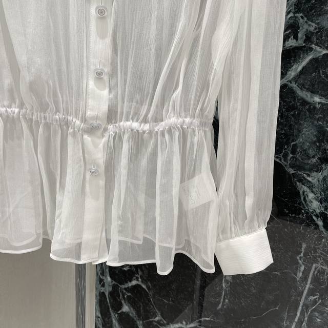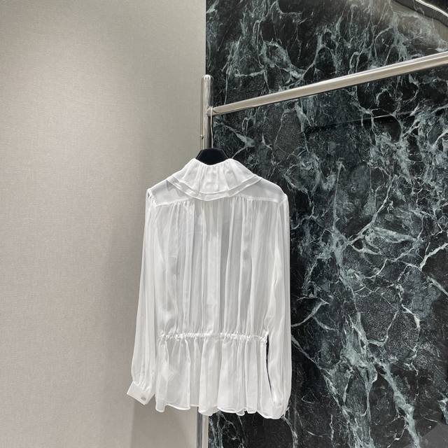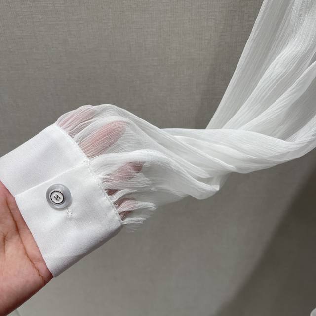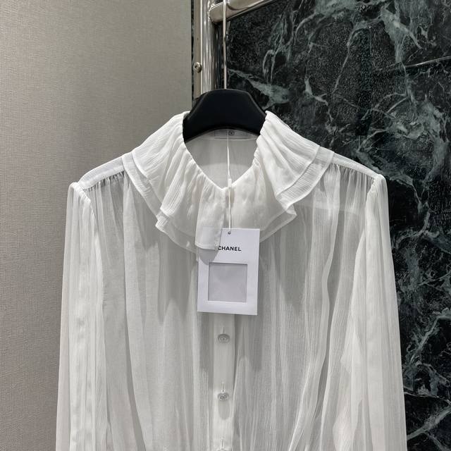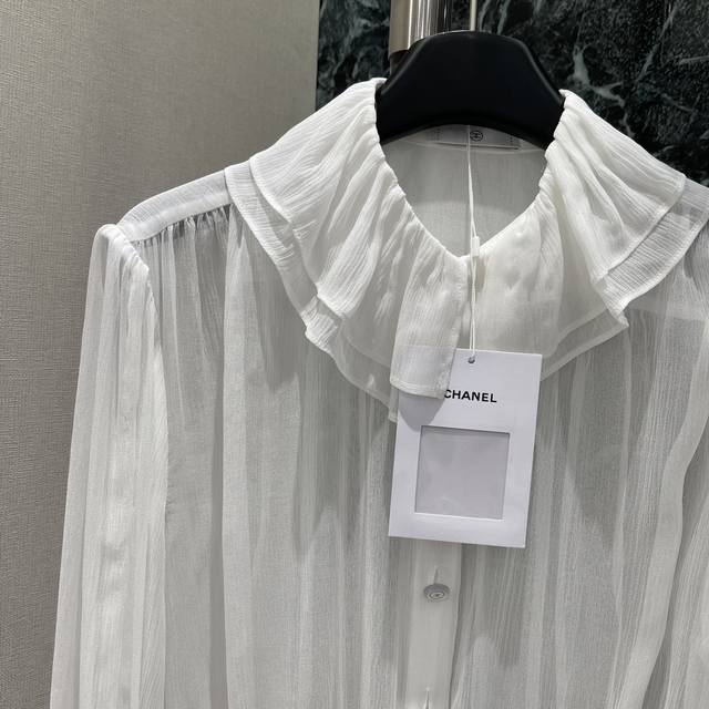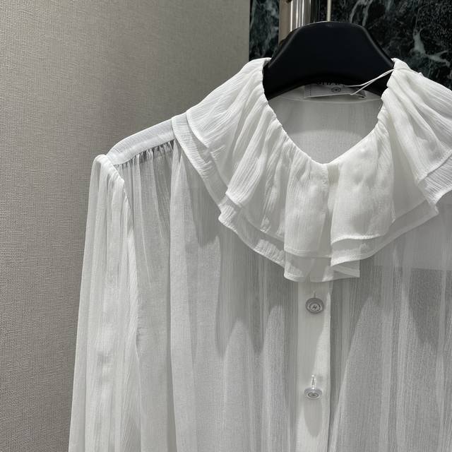 Chanel 25 New Summer Style Lotus Leaf Collar Long-Sleeved Shirt Advanced Customization Light And Thin Tulle Comfortable Fabric Double-Layer Lotus Leaf Collar Design Baby Skirt Hem Can Cover The Cross Well And Make You Look Thin And Loose Version All-Match Chicken Fairy Style Light Tulle Layered Inside The Coat Also Looks Good Simple And Not Tacky All-Match Must-Buy One Color Spot Sml
