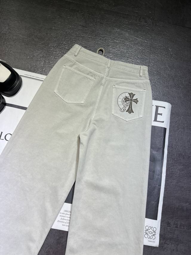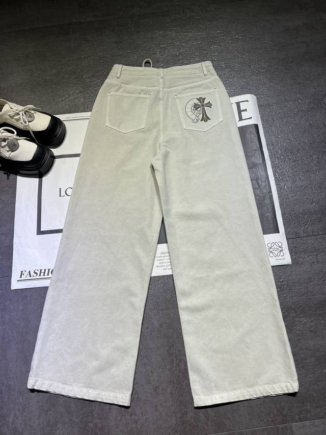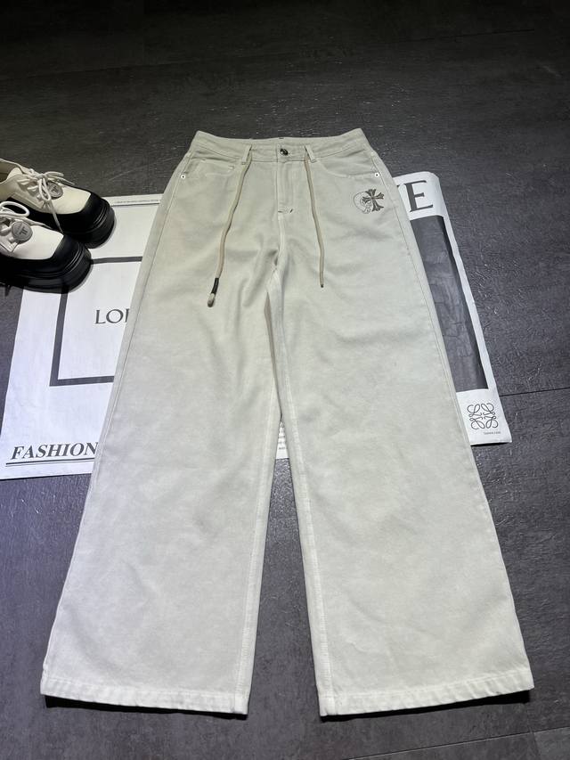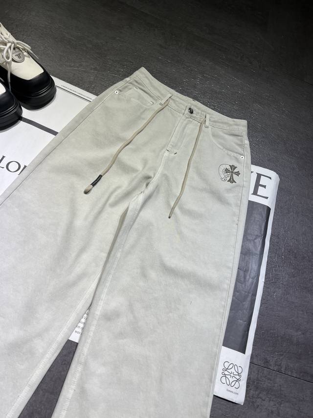 chorme Heart* 25Ss New Spring And Summer Cross Sanskrit Print Drawstring Denim Trousers | Exclusive High Version Production This Pair Of Jeans Must Be Given Full Marks. The Version Can Directly Become A God. The Absolute King Of Jeans. The Absolute Straight Leg Artifact Makes You Look Thin. Lift Your Arms And Legs In One Step. It Can Take Care Of All Your P Clothes. Raise The Waistline So That Even Small People Can Wear A 3:7 Body Proportion. Whoever Wears It Will Have Thin And Straight Long Legs. Highly Recommended. Order Quickly. Available Now. Sml