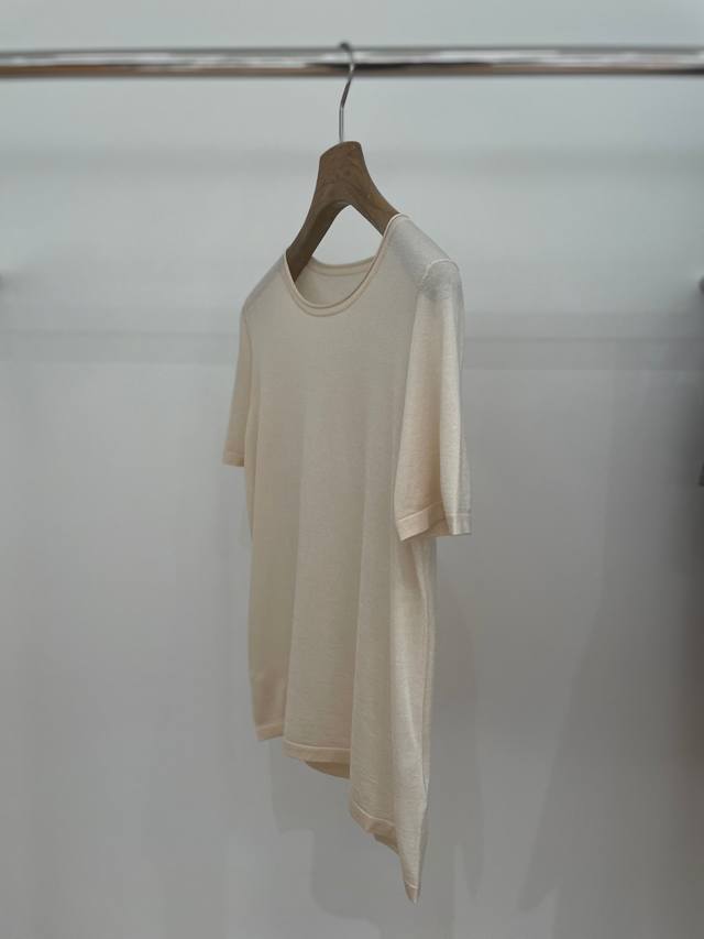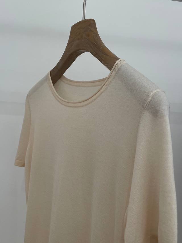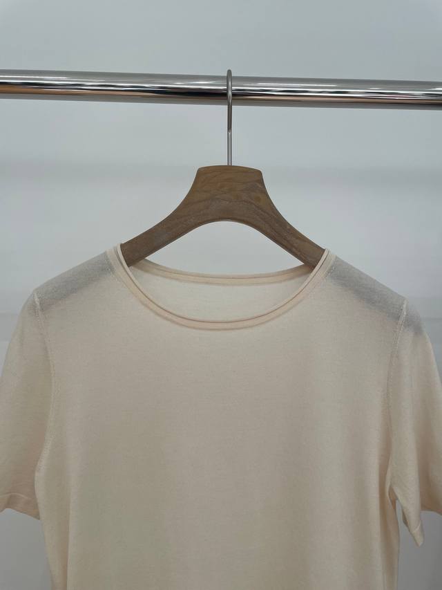 New 25 Spring And Summer Minimalist Row Silk Wool Skin-Friendly Short Sleeve Knitted T-Shirt Size Smlxl