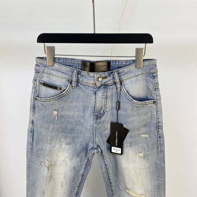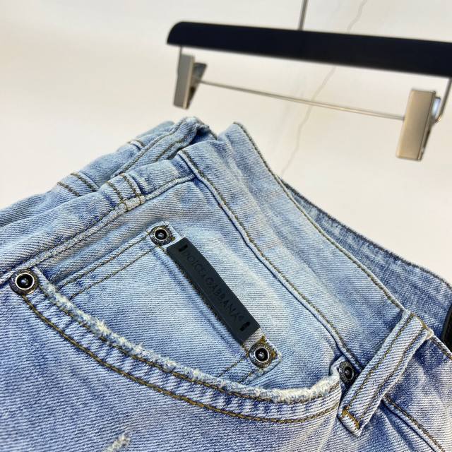 d&G2025 Summer New Thin Original Jeans Original Hardware Leather Brand Versio