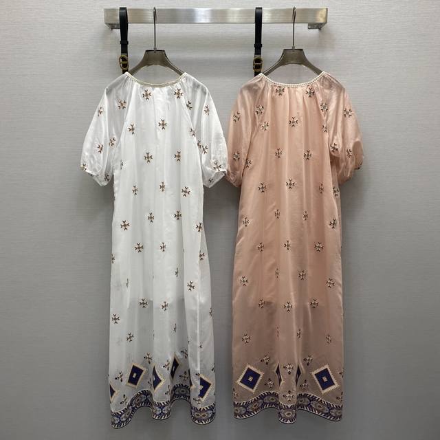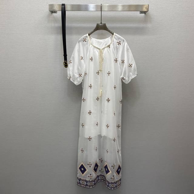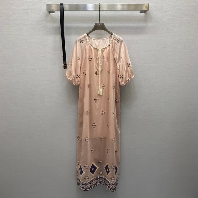 / di*25Ss Heavy-Duty Embroidery Exquisite Round Neck Lace-Up Design Dress With