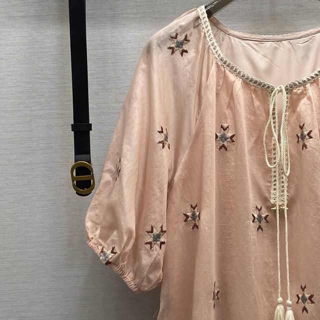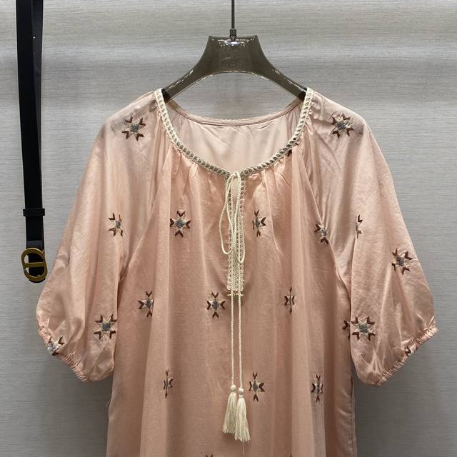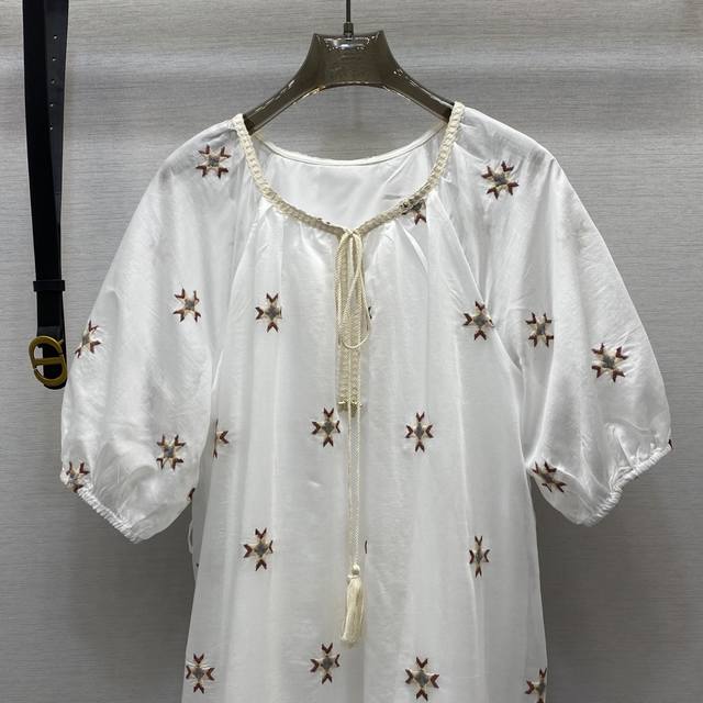 di*25Ss Heavy-Duty Embroidery Exquisite Round Neck Lace-Up Design Dress With Belt High-Quality Fabric Color: Picture 2 Colors Fabric Embroidery Tencel Fabric Smlxl