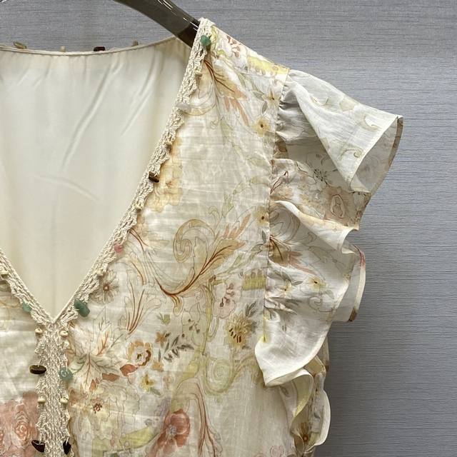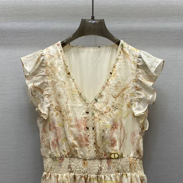 di*25Ss Sexy V-Neck Shell Button Embellishment Flying Sleeve Design Waist Dre