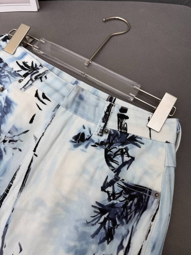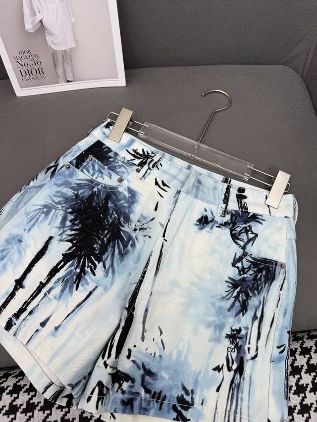 / dio* 25Ss New Denim Shorts New Pattern Printed Fabric Fashionable And Generou