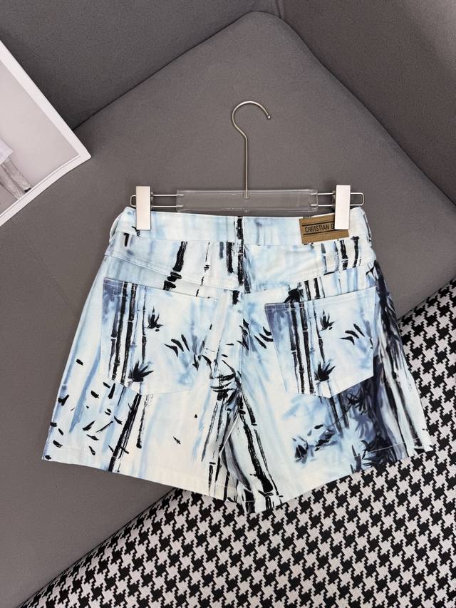 dio* 25Ss New Denim Shorts New Pattern Printed Fabric Fashionable And Generous Single Color Three Code Smla807P
