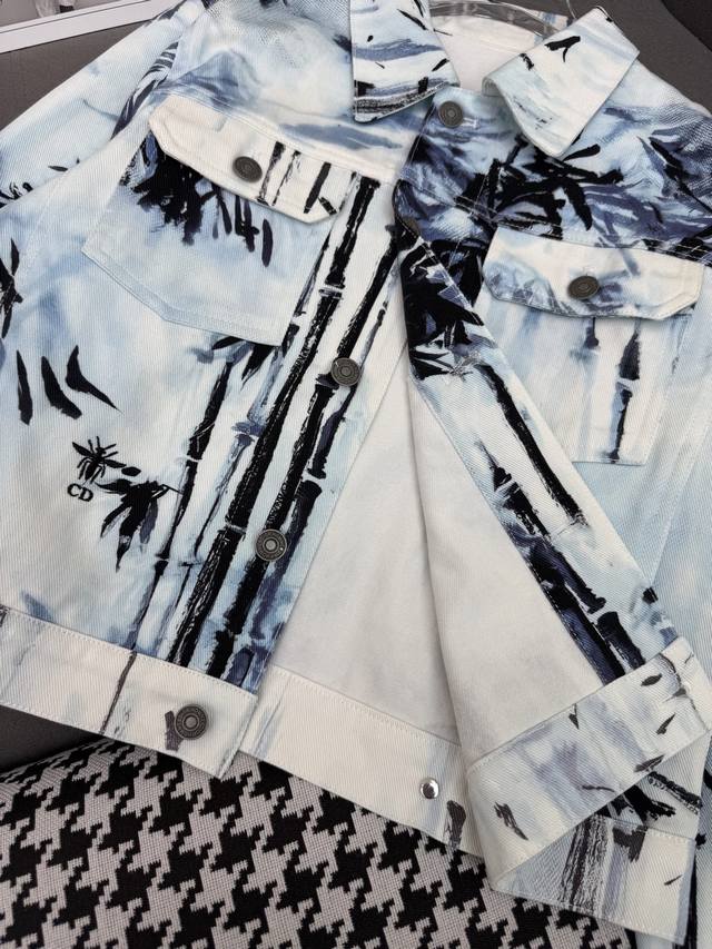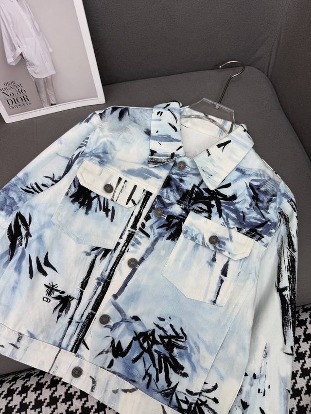 / dio* 25Ss New Lapel Denim Jacket New Pattern Printed Fabric High Quality Sing