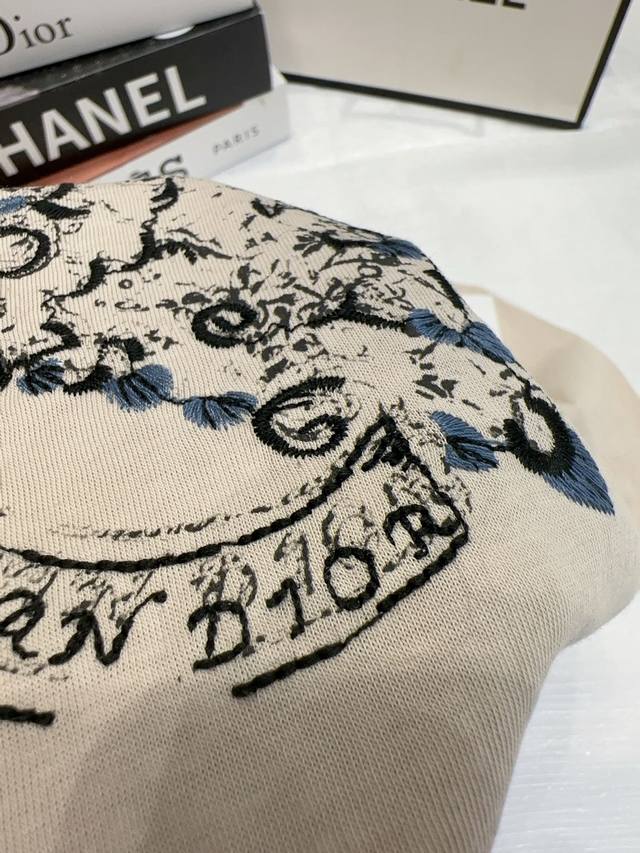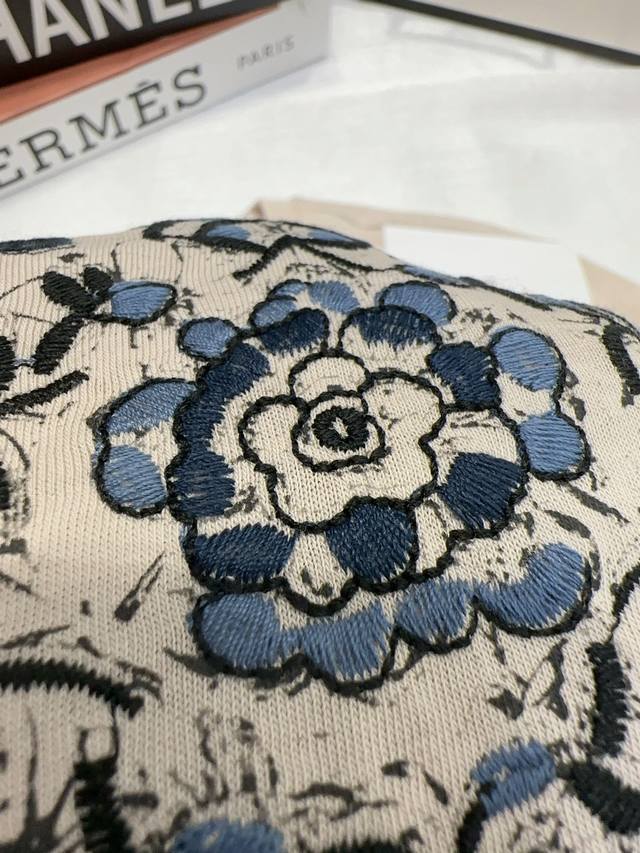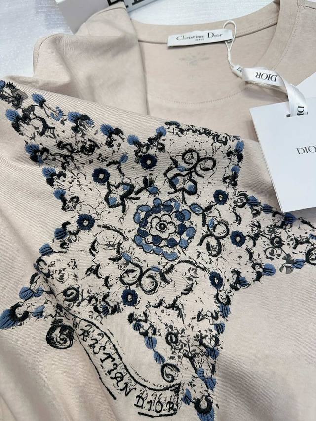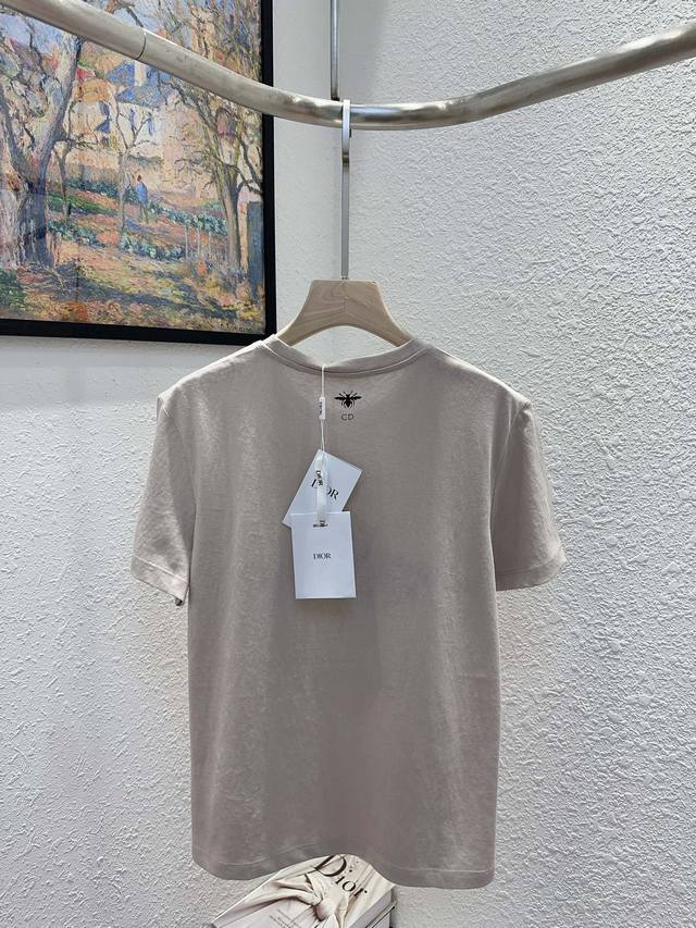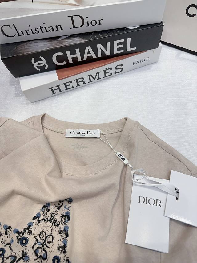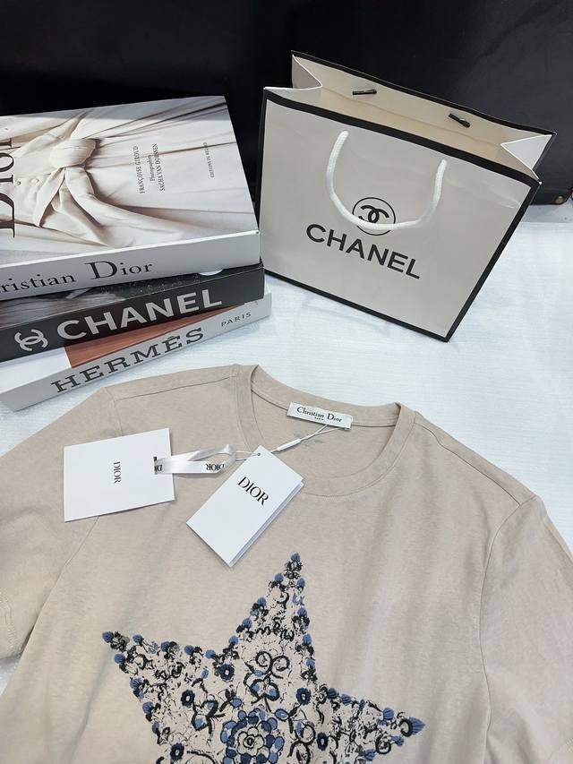 dio* Special Counter Model Early Spring New Style Heavy Embroidery Logo Five-Pointed Star Flower Pattern On The Back Small Bee Round Neck Short-Sleeved T-Shirt Three Labels Complete Three Colors Code Sml Spot Delivery M Size Chest 96 Length 61