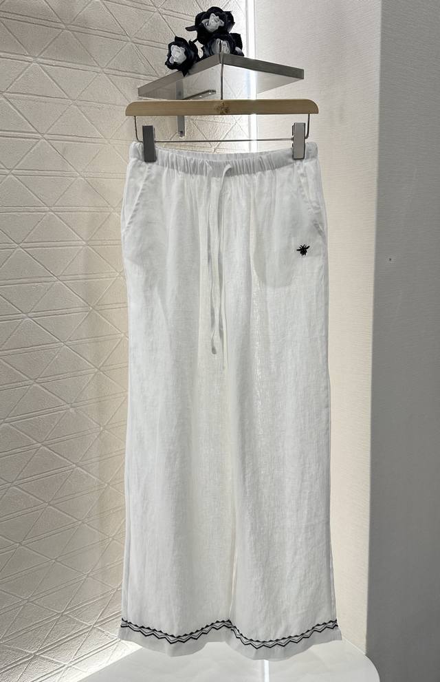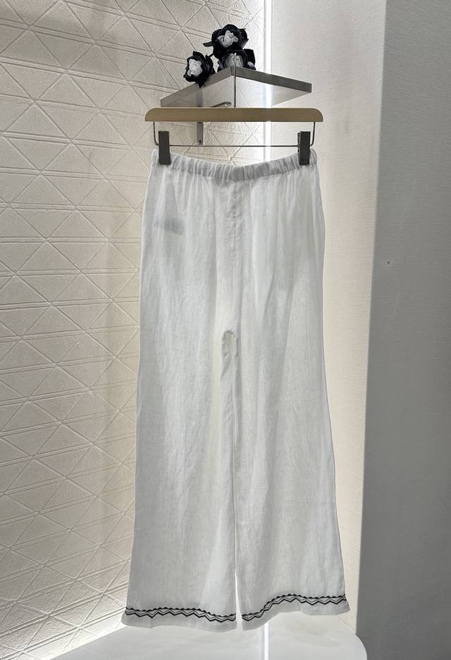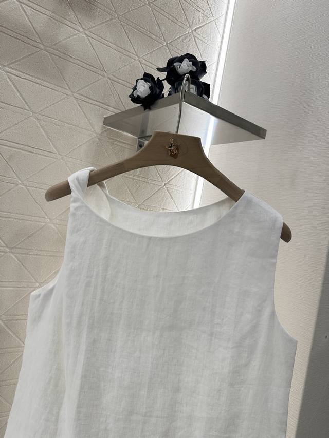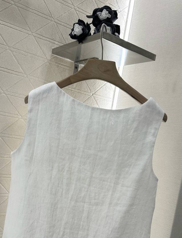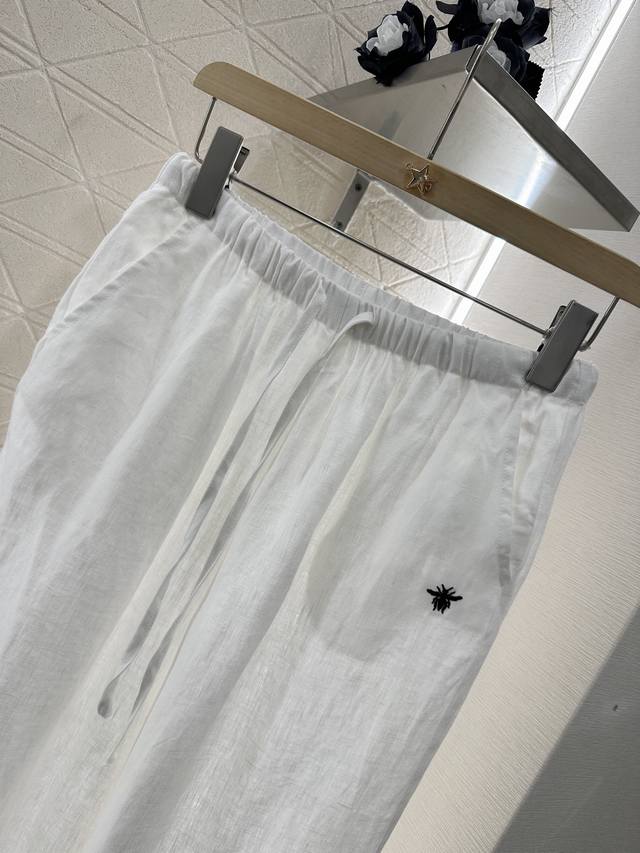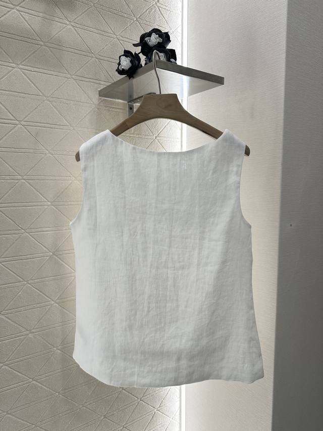 Customized Yb Natural Linen Material With Obvious Texture, Breathable And Skin-Nourishing Sleeveless Top, Wide-Leg Straight Trousers Set Tailored Top With Straight Waist And Loose Fit, Accommodating The Figure, Adding A Free And Easy And Handsome Atmosphere, One Shoulder Is Twisted, Asymmetrical Design, Bee Logo Embroidered On The Hem Diagonally Below, Highlighting The Brand Style, Simple But Not Monotonous Visual Effect, Creating A Rich And Old Money Style, Matched With The Same Series Of Trousers, Elastic Drawstring Accommodating Waist And Trouser Legs, Embroidered And Sewn Wave Pattern, Exuding A Holiday Style, Casual Matching Is Colorful And Fashionable, It Can Present An Exclusive Relaxed And Elegant Style In All Seasons, And It Is Also Great To Match Separately, Customized Surface And Auxiliary Materials, Identify The Version Of The High Version Set