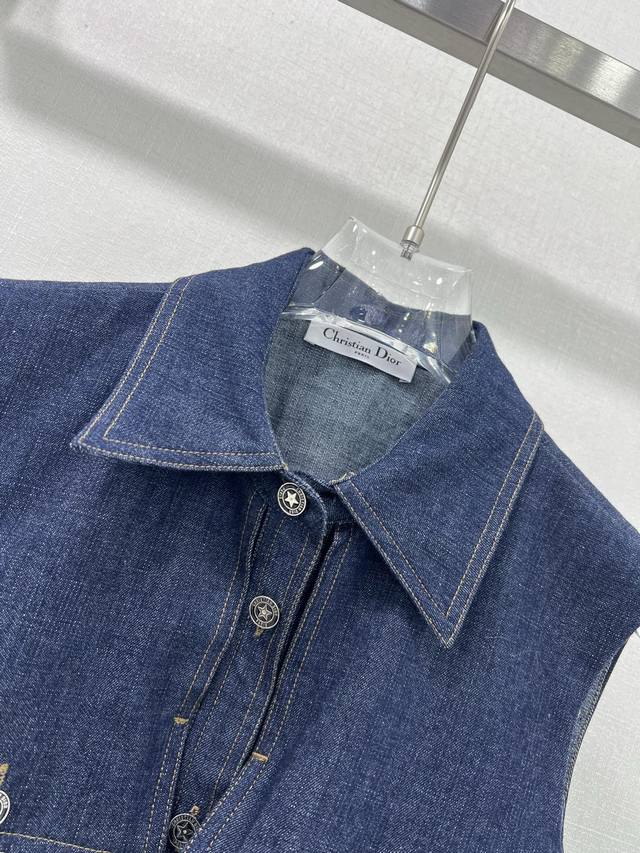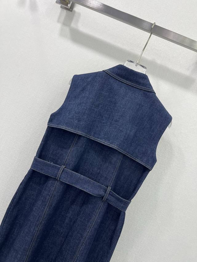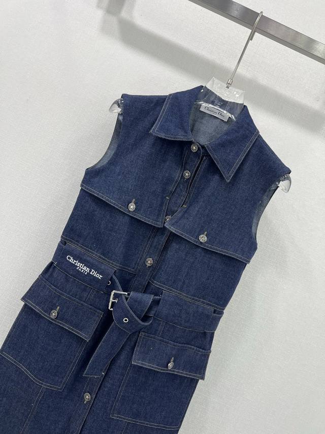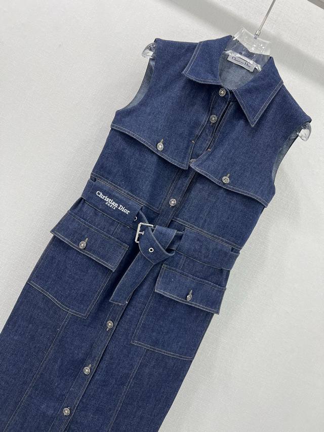 dio*25 New Denim Dress, Youthful And Age-Reducing, Must-Have Item, Made Of Blue Denim, Sleeveless With A Belt, Letter Embroidery On The Waist, Making The Fashion Look More Refined And Concise, Revealing A Retro Style, Mainly Making You Look Slim, The Whole Version Is Very Three-Dimensional, The Fabric Is Made Of Imported Specific Denim Fabric, Customized By Yb Hardware, The Must-Have Denim Skirt In The Sisters' Wardrobe Is Really Getting More And More Thoughtful And Younger, Single Color, 3 Yards Smlb