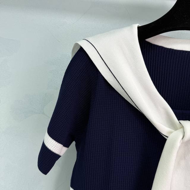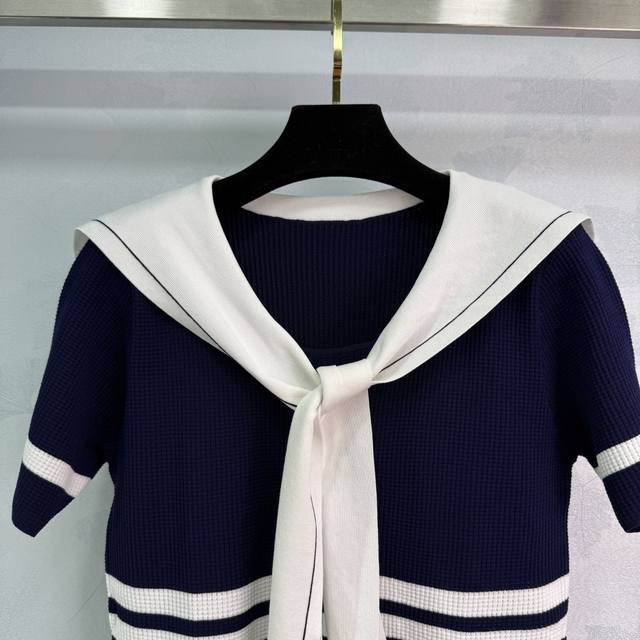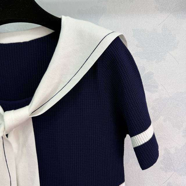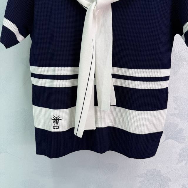 dio*25 New Summer Style Contrast Color Navy Collar Bee Letter Embroidery Ches