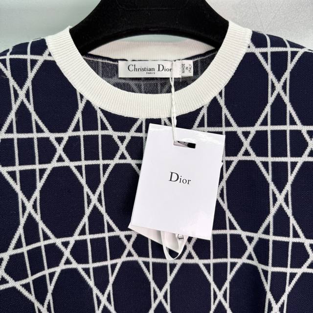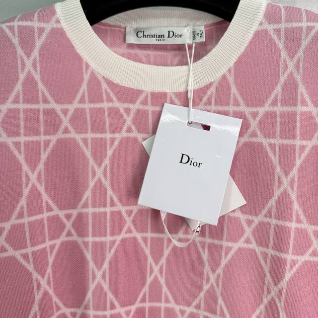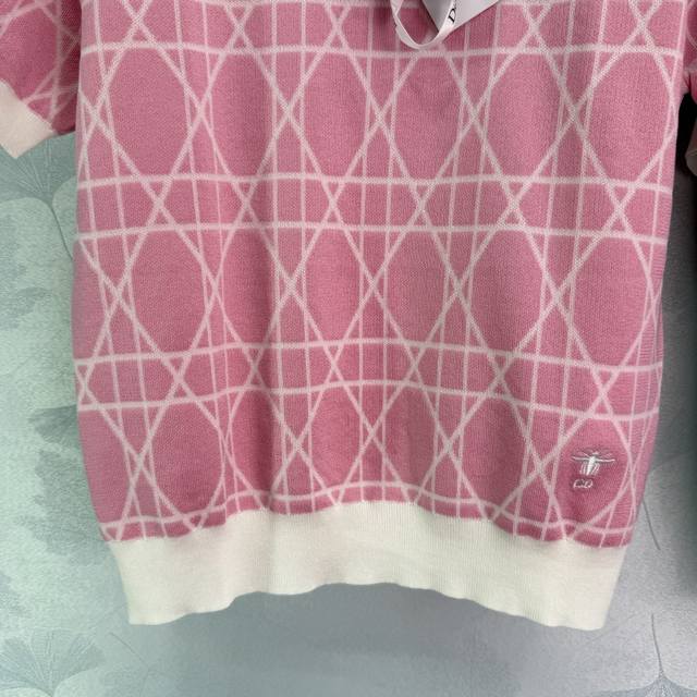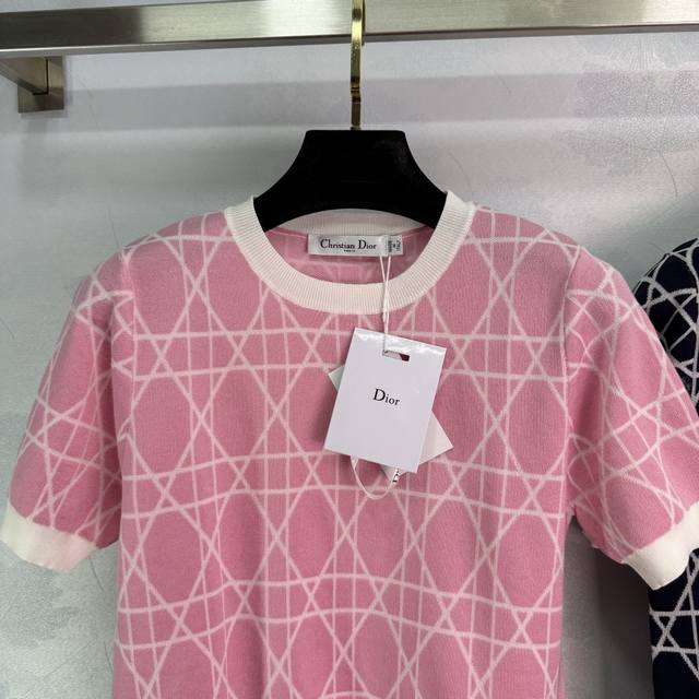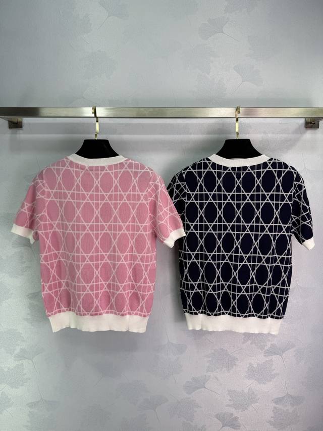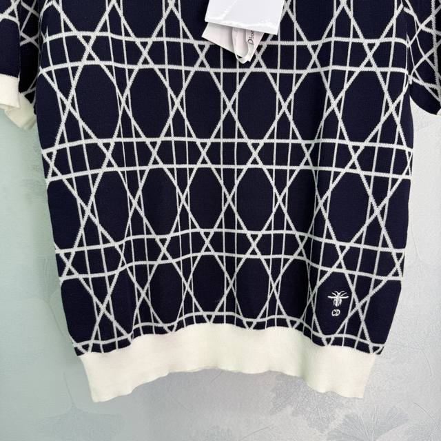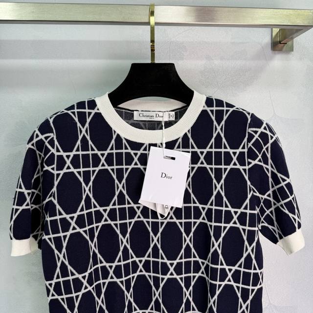 dio*25 Spring And Summer New Knitted Round Neck Short Sleeves Classic Diamond