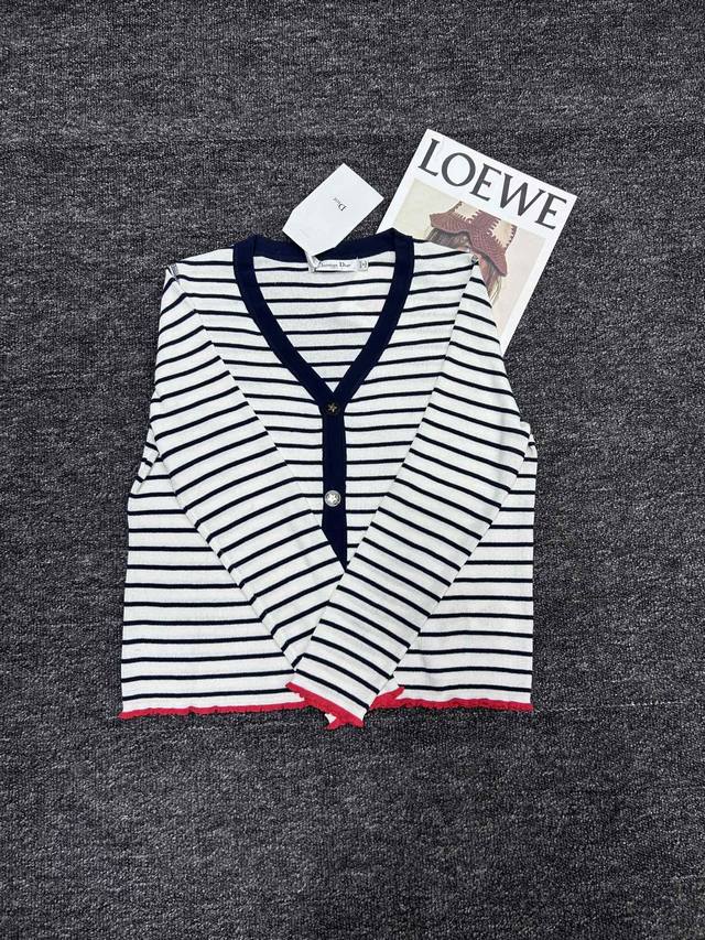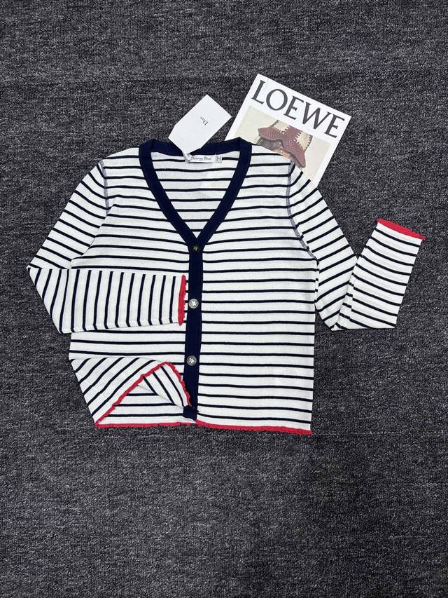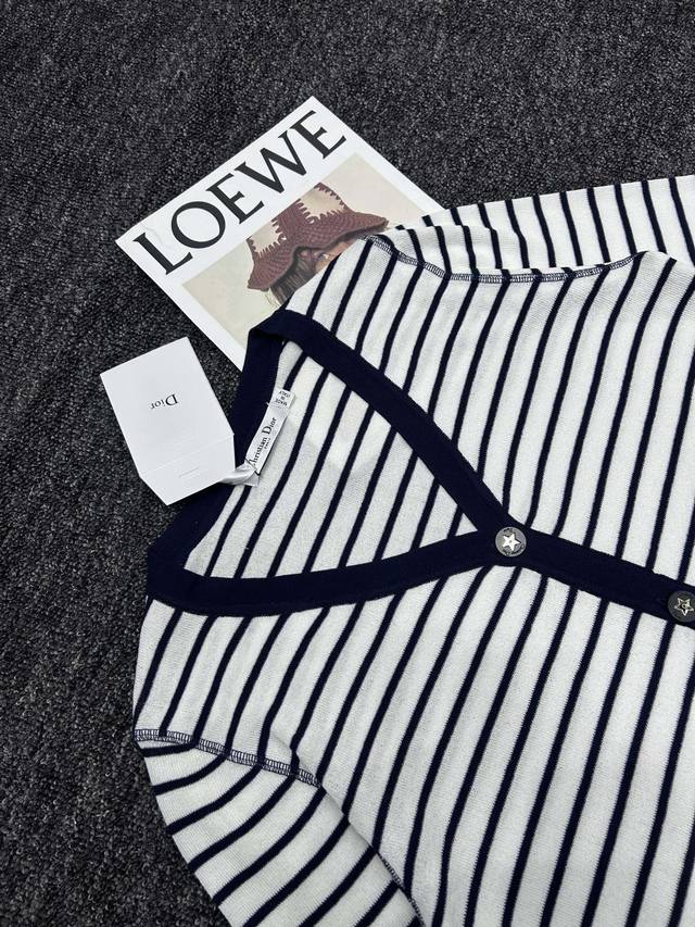 dior Dior Women's New Striped Cardigan With Five-Pointed Star Pattern Buttons Unique And Eye-Catching Simple And Fashionable Showing Elegant Taste Sml Three Sizes In Stock