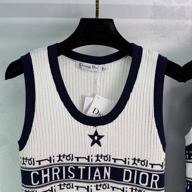 dior Knitted Vest Classic Style Black And White Available Jacquard Design With Five-Pointed Star Embellishment Fashionable And Versatile Fabric Soft And Comfortable Suitable For All Occasions 2 Colors 3 Sizes Sml T226B